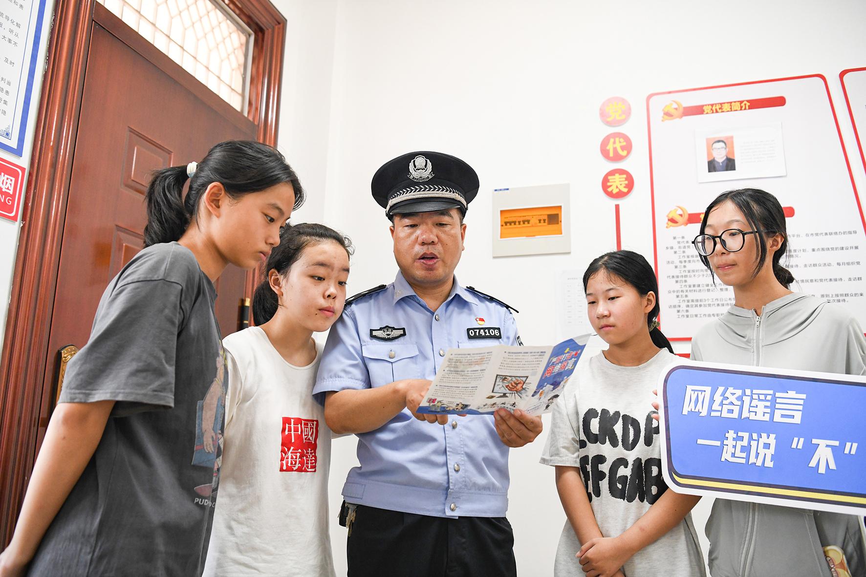 8月9日,安徽省馬鞍山市含山縣公安局花山派出所組織民警走進(jìn)雙圩行政村留守兒童之家,開展“抵制網(wǎng)絡(luò)謠言 護(hù)航幼苗成長”主題宣傳活動。