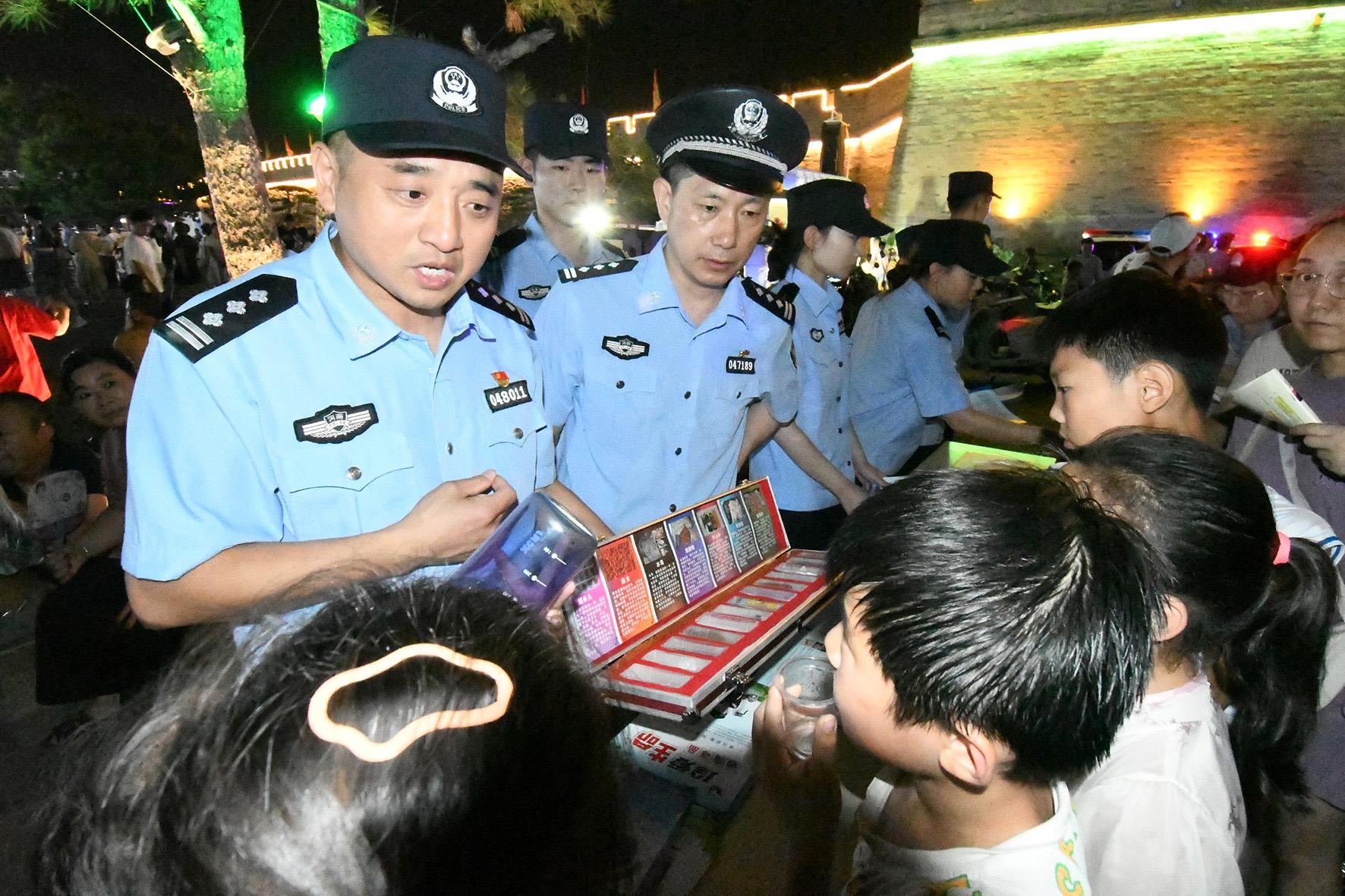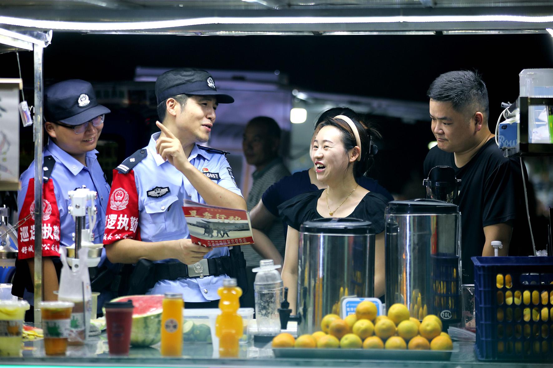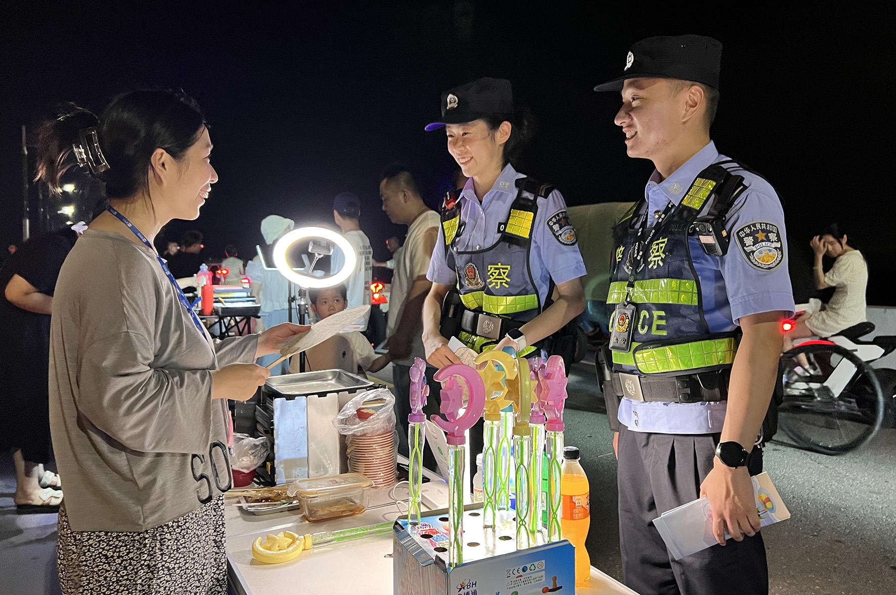 8月10日晚,河南省??h公安局結(jié)合夏夜治安巡查宣防集中統(tǒng)一行動,加大對轄區(qū)商圈、夜市、廣場等人員密集場所的檢查巡邏守護(hù)力度,向群眾宣傳反詐、禁毒、拒賭、防火防盜等安全防范知識。