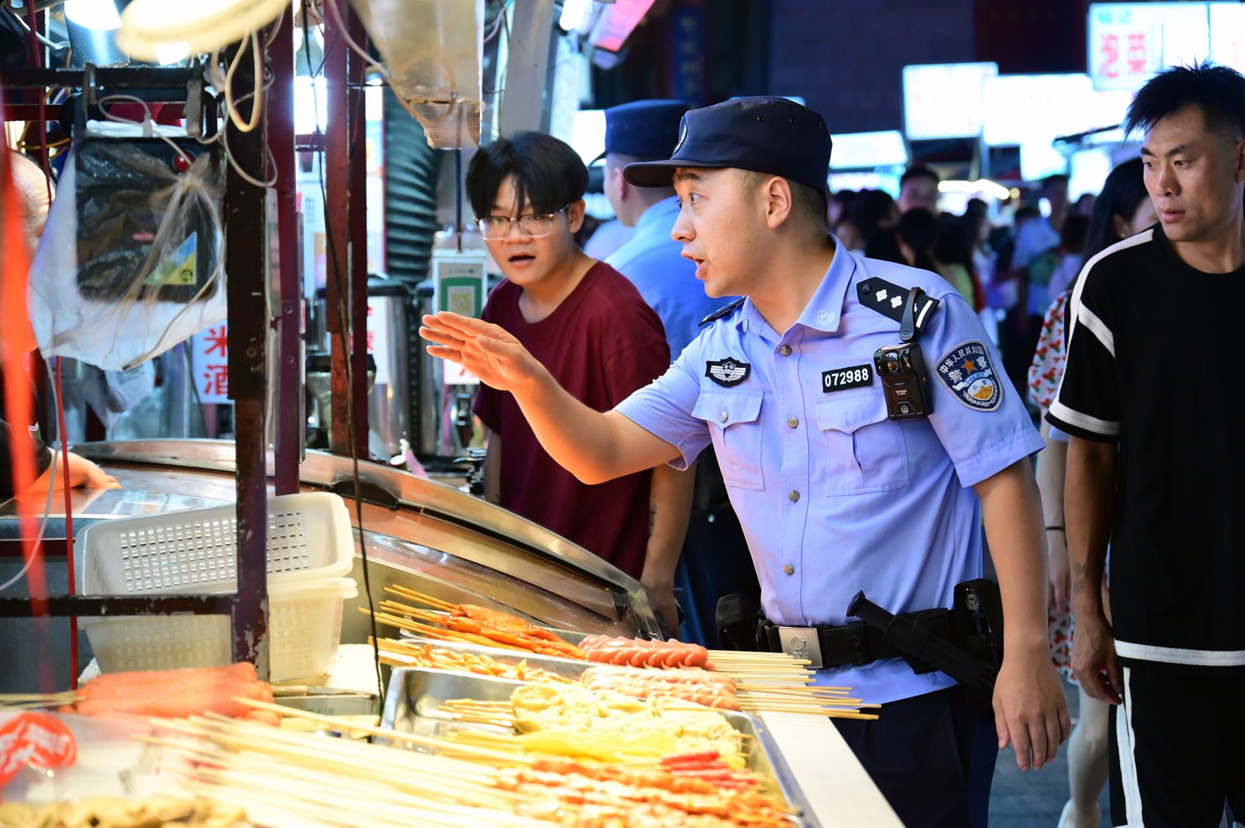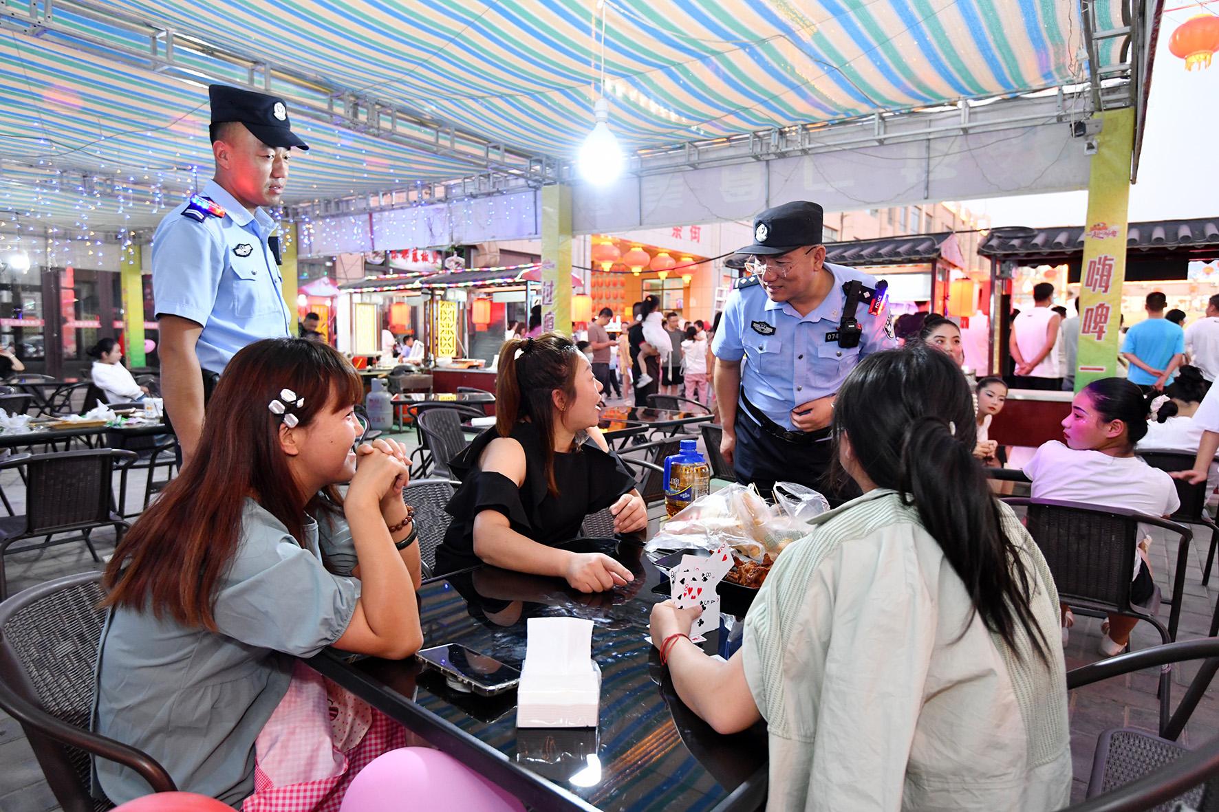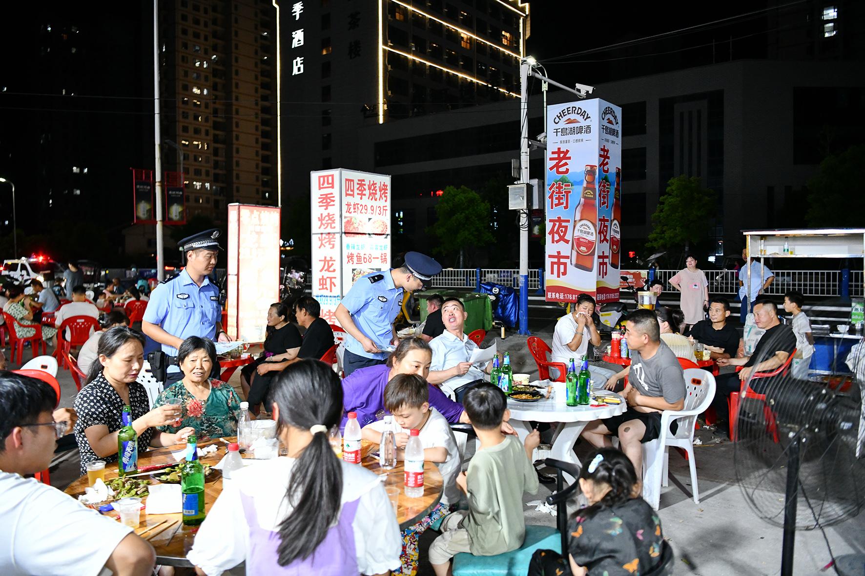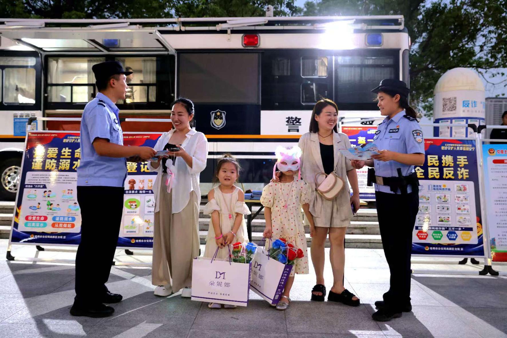 8月10日晚,河南省??h公安局結(jié)合夏夜治安巡查宣防集中統(tǒng)一行動,加大對轄區(qū)商圈、夜市、廣場等人員密集場所的檢查巡邏守護(hù)力度,向群眾宣傳反詐、禁毒、拒賭、防火防盜等安全防范知識。