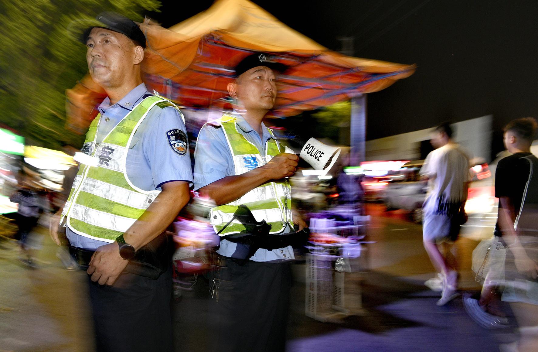 8月10日,安徽省固鎮(zhèn)縣公安局特巡警大隊(duì)民輔警在市民廣場和楚漢步行街夜市巡邏。夏季治安打擊整治行動開展以來,固鎮(zhèn)縣公安局組織警力加強(qiáng)市民廣場、夜市排檔、購物中心等人員密集場所的巡邏防控,及時(shí)發(fā)現(xiàn)處置可疑情況,強(qiáng)化社會治安防控。