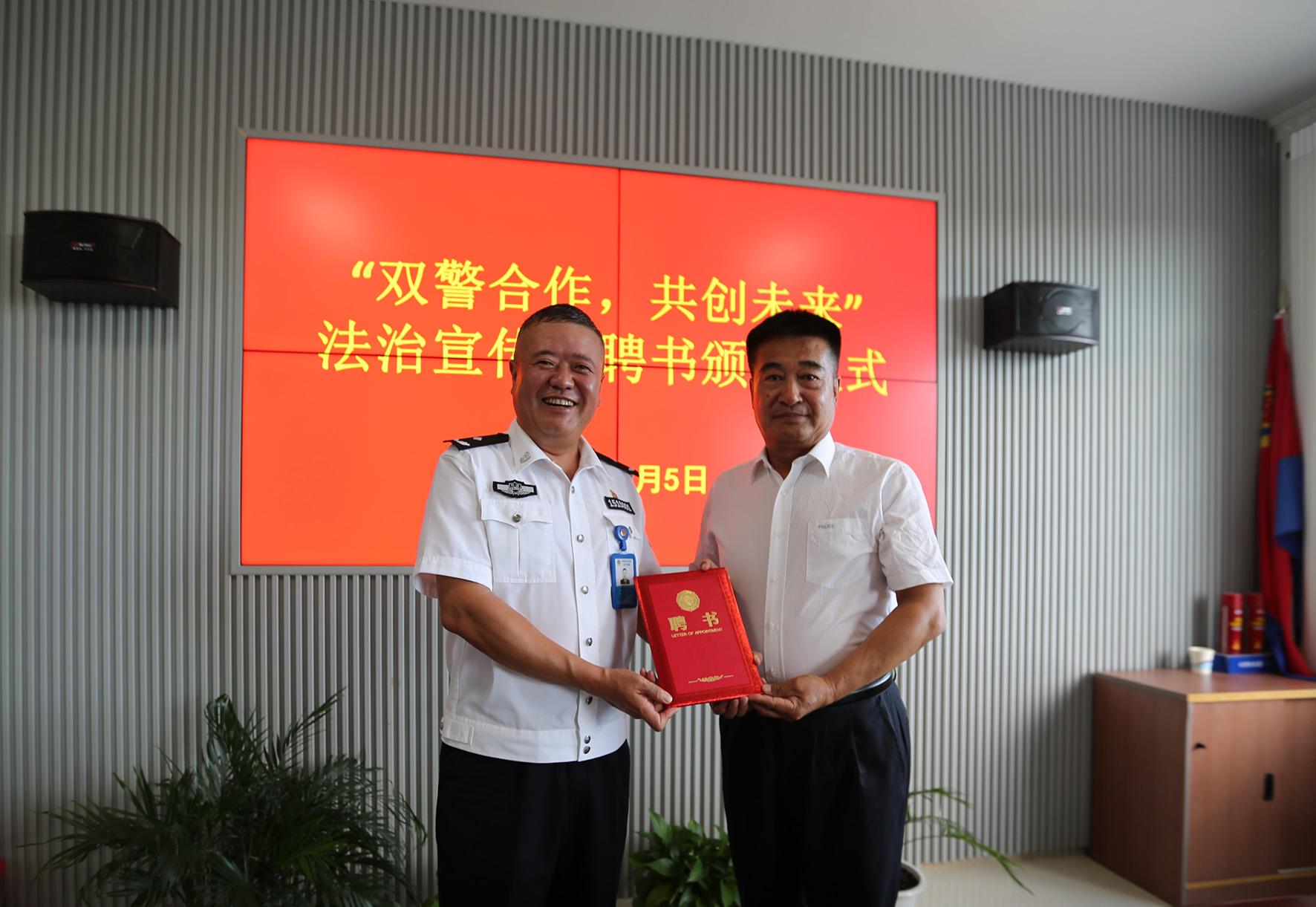 圖為監(jiān)獄負責人向法治宣傳員頒發(fā)聘書。