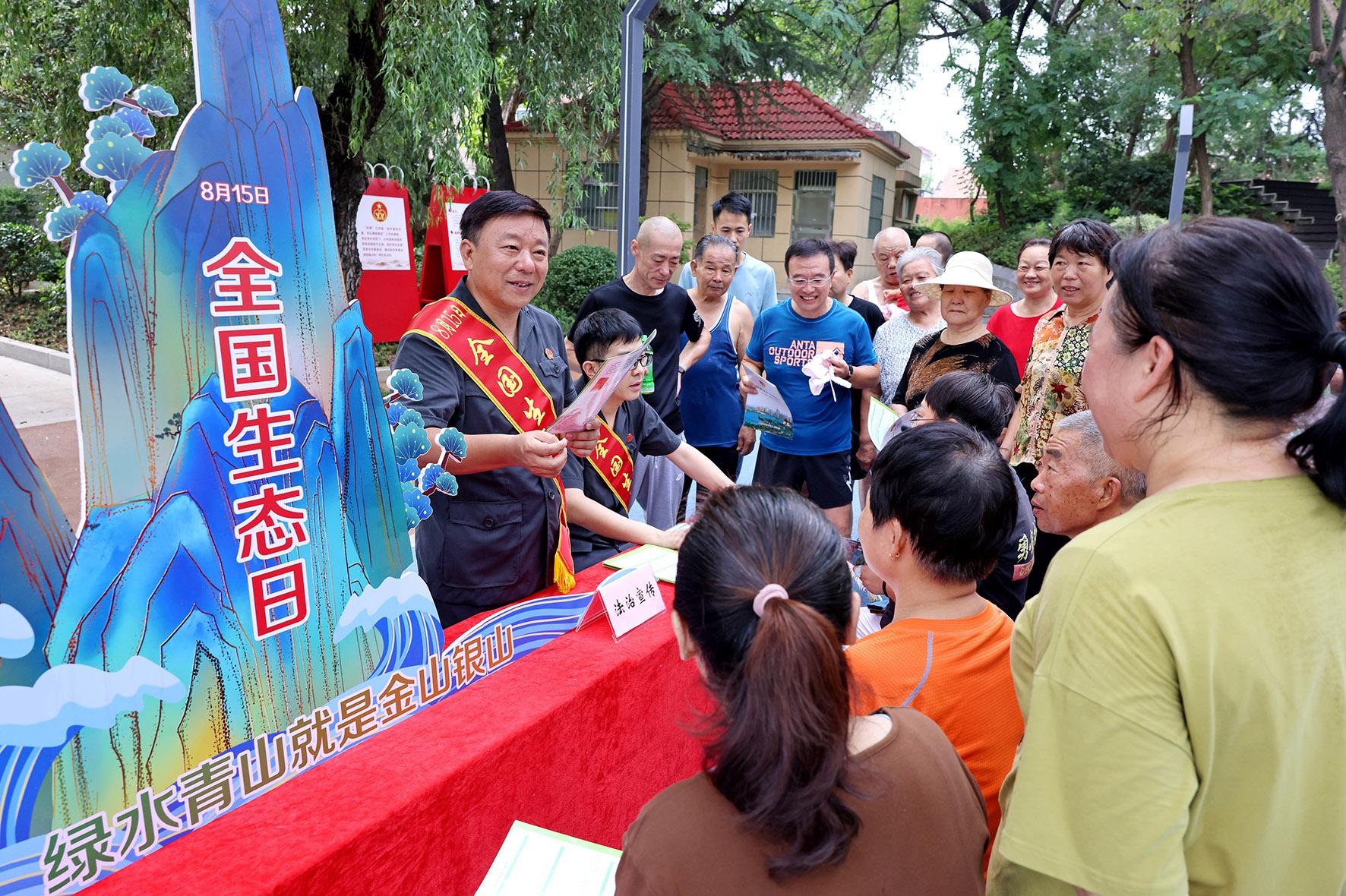 圖為8月14日,法官在社區(qū)公園向市民宣傳生態(tài)環(huán)境保護(hù)法律法規(guī)知識(shí)。