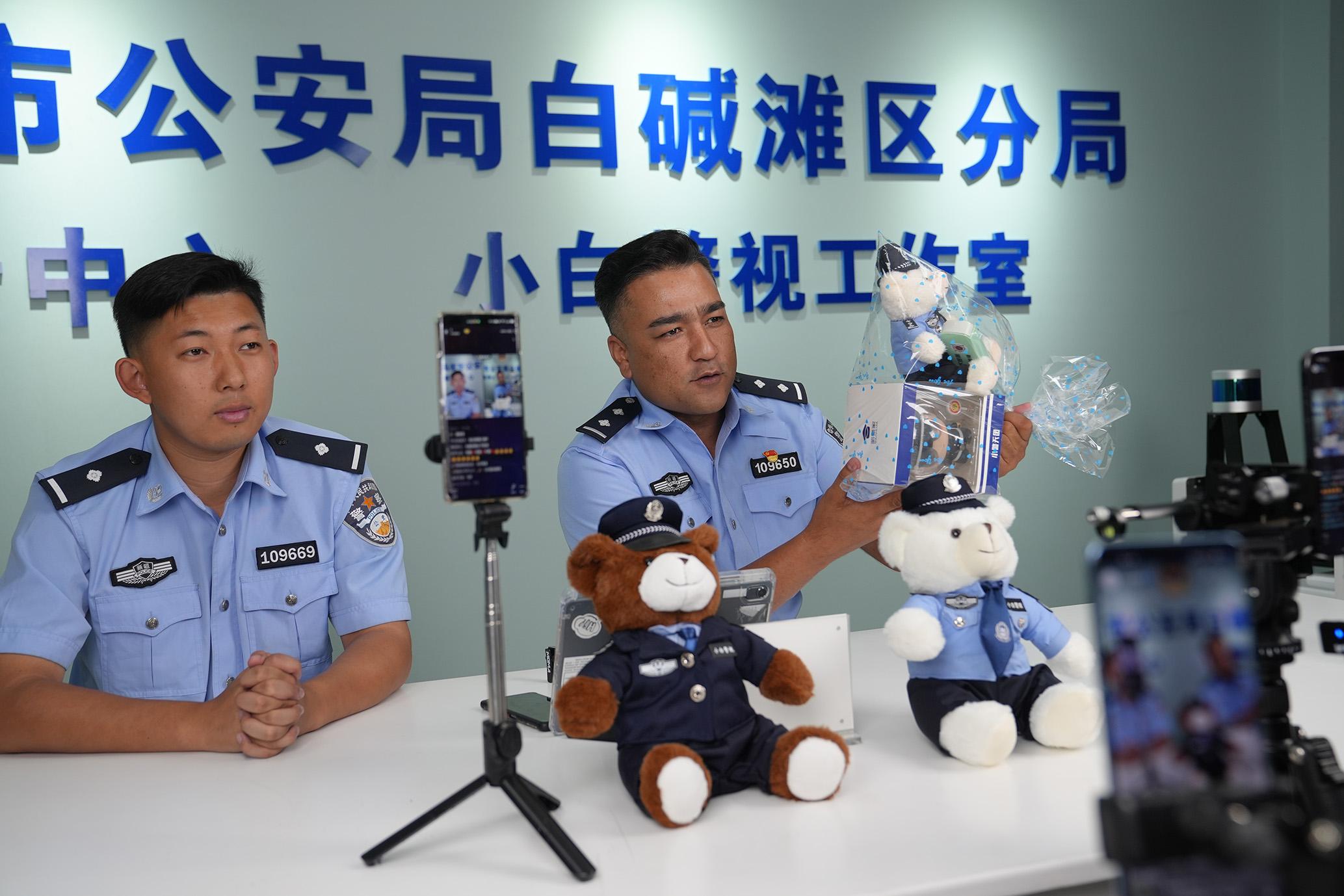 8月15日,新疆塔城地區(qū)烏蘇市公安局新媒體工作室網(wǎng)紅民警做客克拉瑪依市公安局白堿灘區(qū)分局新媒體中心“小白警視”直播間,一同開展夏季治安打擊整治矛盾糾紛化解普法直播。