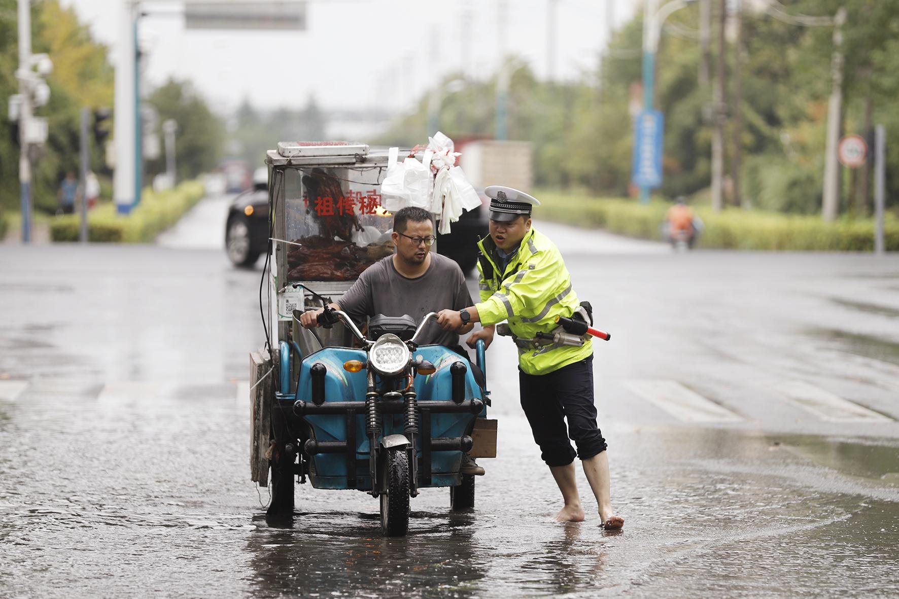 8月19日,安徽省蕪湖市迎來(lái)強(qiáng)降雨天氣。蕪湖市公安局交警支隊(duì)鳩江大隊(duì)聞?dòng)嵍鴦?dòng),全警上崗,疏導(dǎo)交通,服務(wù)市民,確保市民平安出行。