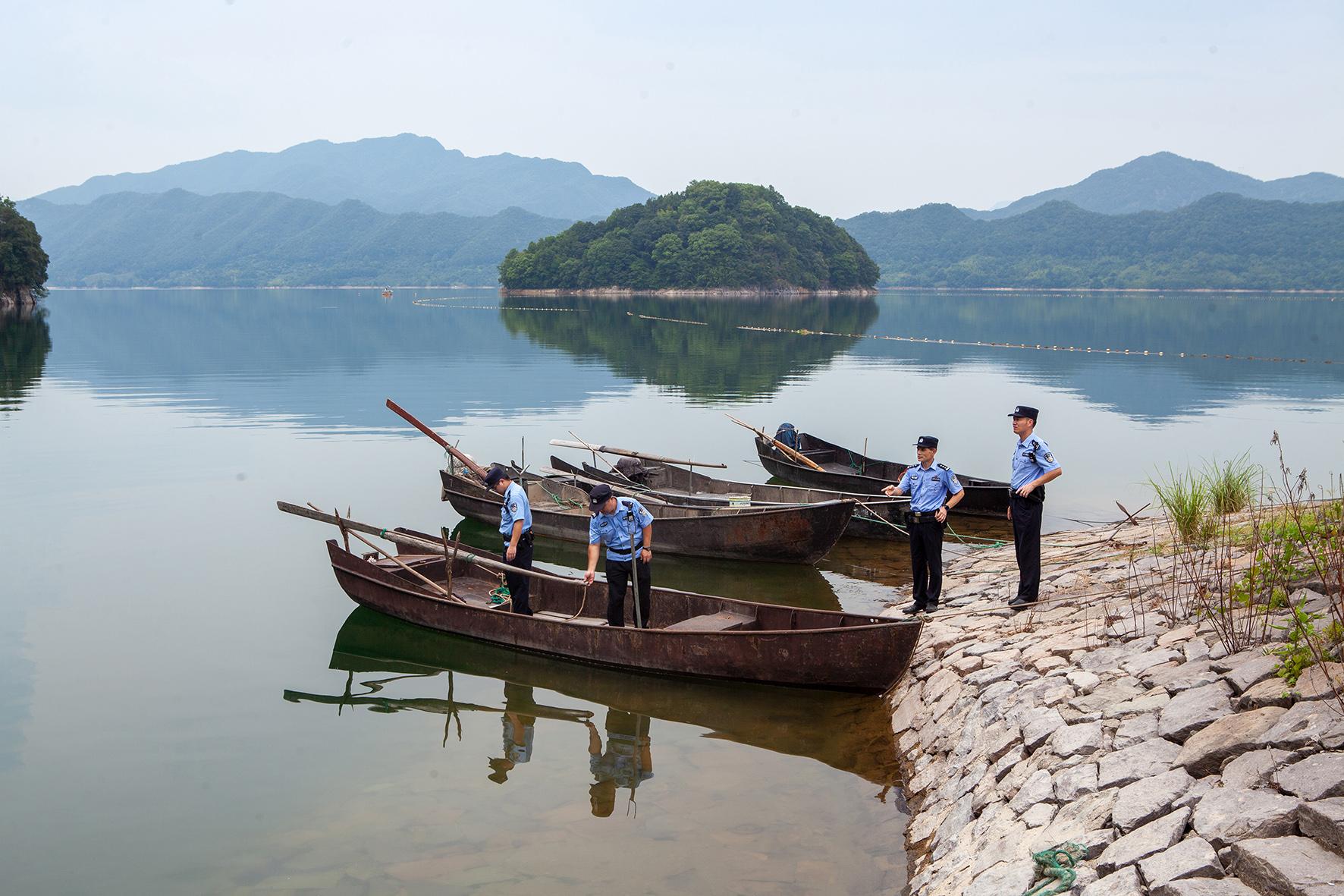 8月27日,浙江省臺州市公安局黃巖分局北洋派出所民警在長潭湖水庫巡查。黃巖警方實行“生態(tài)警務(wù)”,加強對庫區(qū)的巡防管控,整治各種危害水資源安全的行為,提升群眾保護飲用水水源地的意識,切實守護好綠水青山。