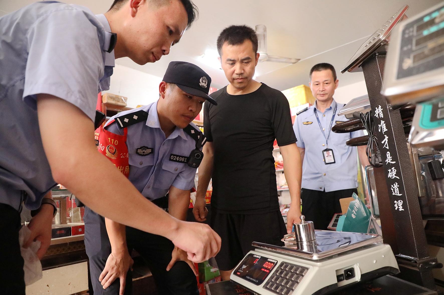 9月2日,江西省九江市公安局潯陽分局金雞坡派出所民警輔警聯(lián)合市場監(jiān)管部門工作人員深入轄區(qū)電子秤銷售門店及農(nóng)貿(mào)市場、超市、流動攤點等,開展電子秤專項檢查行動。