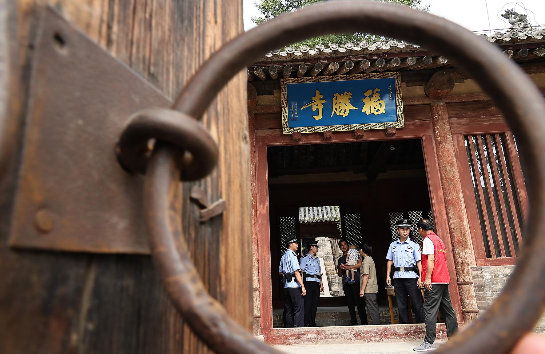 9月3日,山西省運(yùn)城市新絳縣公安局澤掌派出所民警輔警在福勝寺景區(qū)向工作人員和游客宣講防火、安全注意事項(xiàng)。