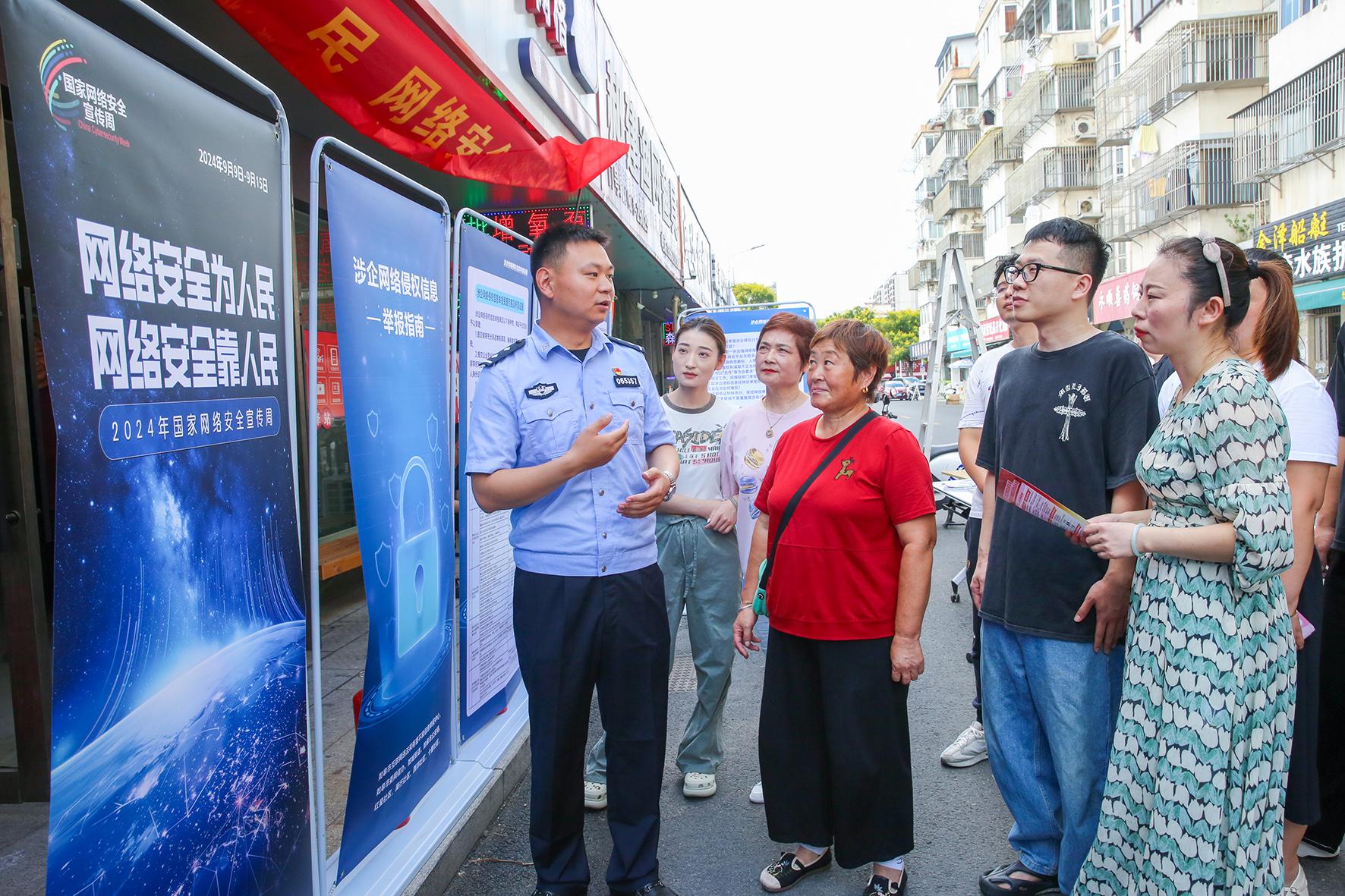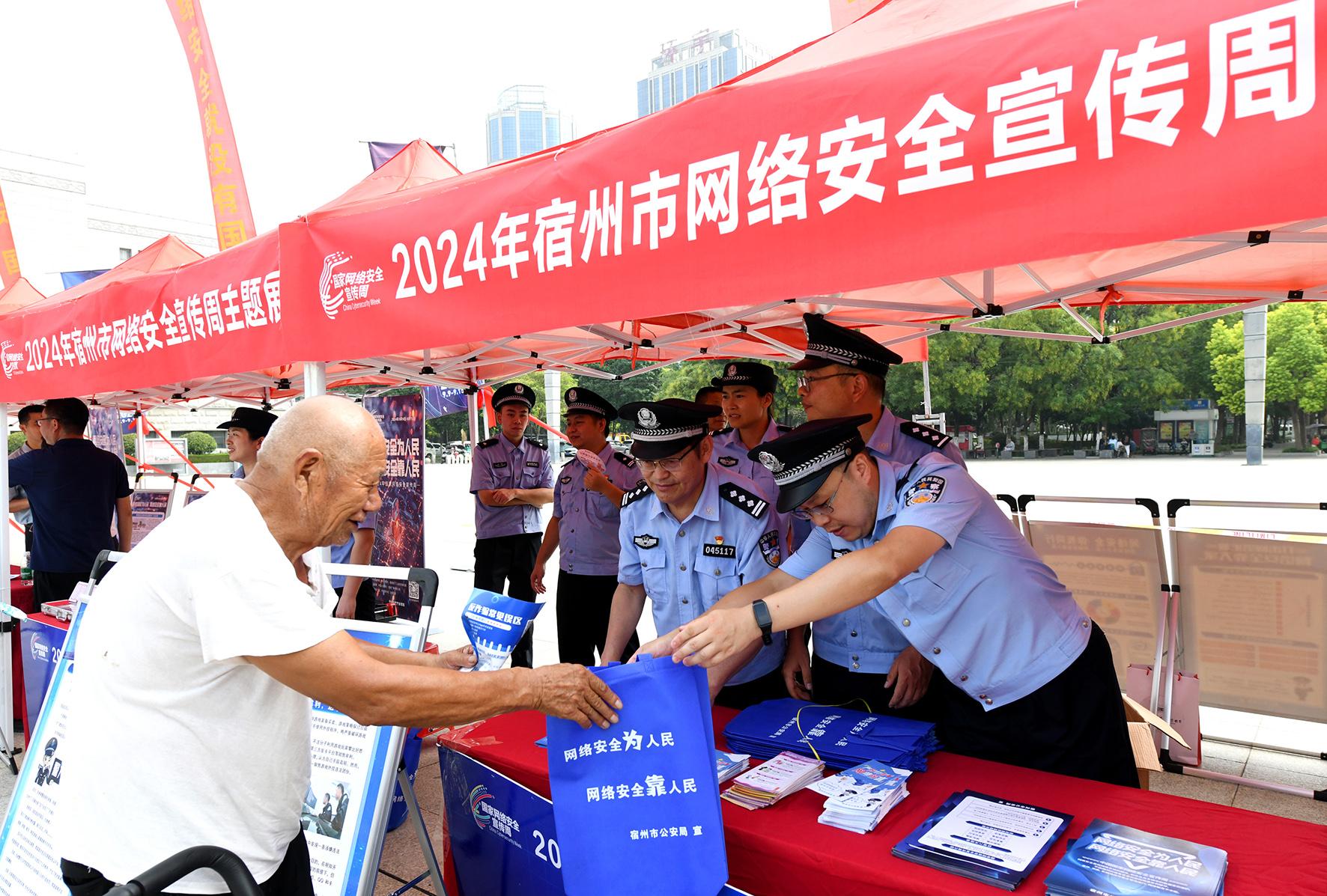9月9日,安徽省宿州市公安局網(wǎng)安支隊(duì)民警向市民發(fā)放宣傳材料并講解網(wǎng)絡(luò)安全常識(shí)。當(dāng)日,2024年“國(guó)家網(wǎng)絡(luò)安全宣傳周”在全國(guó)各地同時(shí)啟動(dòng)。