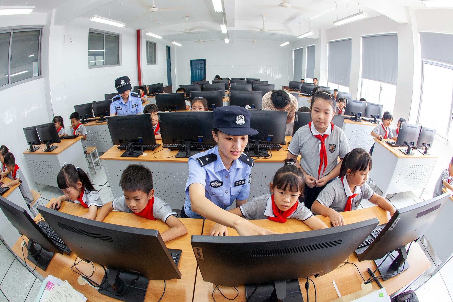 9月9日,浙江省臺(tái)州市公安局黃巖分局新前派出所民警來(lái)到轄區(qū)的小學(xué),給正在電腦教室上課的學(xué)生們講解網(wǎng)絡(luò)安全理念和相關(guān)法律知識(shí)。
