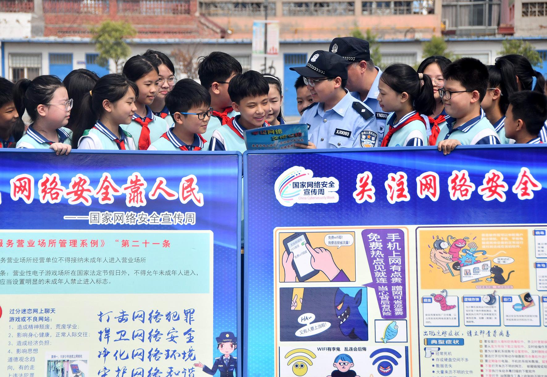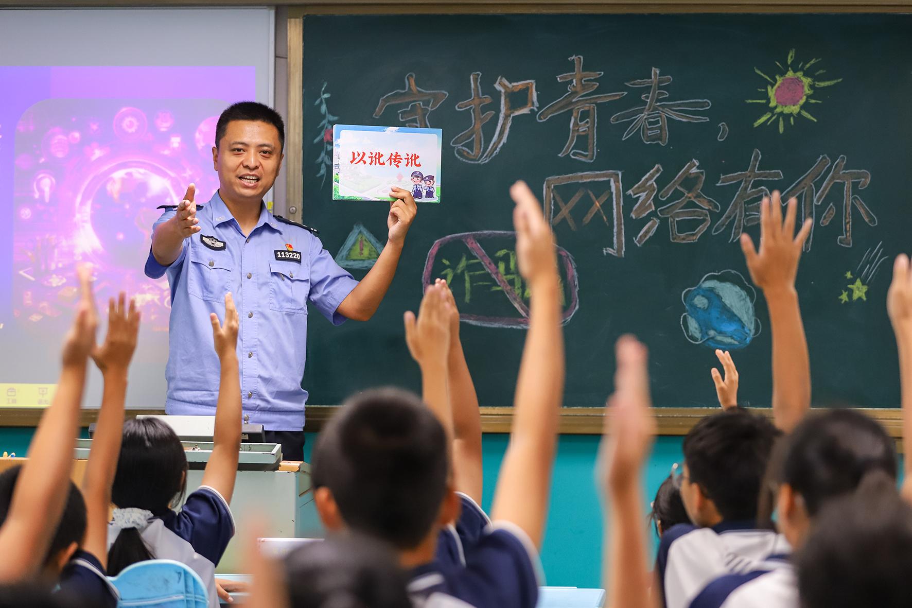 9月9日,河北省邯鄲市永年區(qū)公安局民警來(lái)到第二實(shí)驗(yàn)學(xué)校,向?qū)W生們講解網(wǎng)絡(luò)安全知識(shí)。