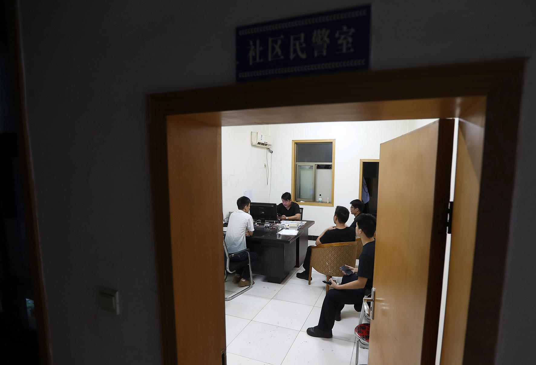 圖一:民警分析研判涉嫌吸食依托咪酯違法行為人的行蹤。