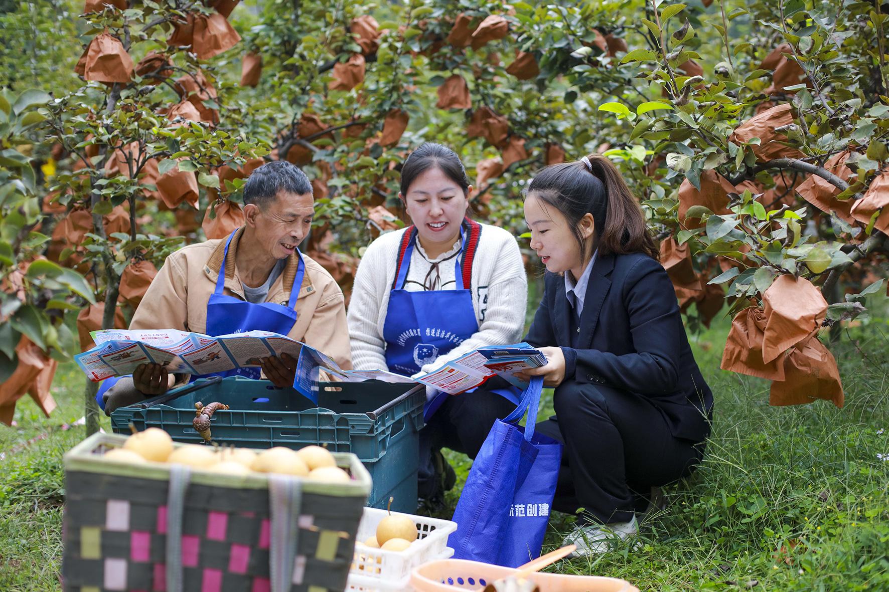 10月9日,貴州省黔西市司法局組織法治工作者走進(jìn)轄區(qū)內(nèi)的鐵石苗族彝族鄉(xiāng)六棱山村金果梨果園,向果農(nóng)宣傳反詐、禁毒、民法典等法律知識(shí)。