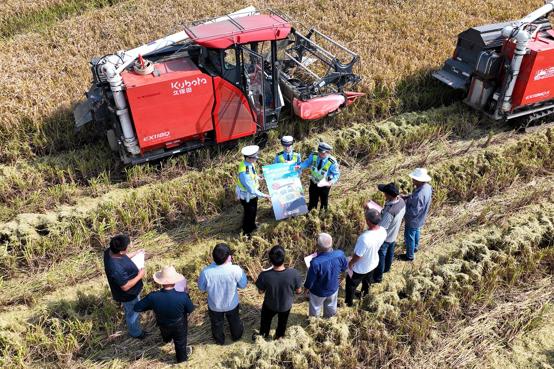 10月11日,安徽省蕪湖市公安局交警支隊高速三大隊抓住農村秋收季節(jié)特點,組織民警深入高速公路沿邊田間地頭開展交通安全宣傳,提高群眾交通安全意識。