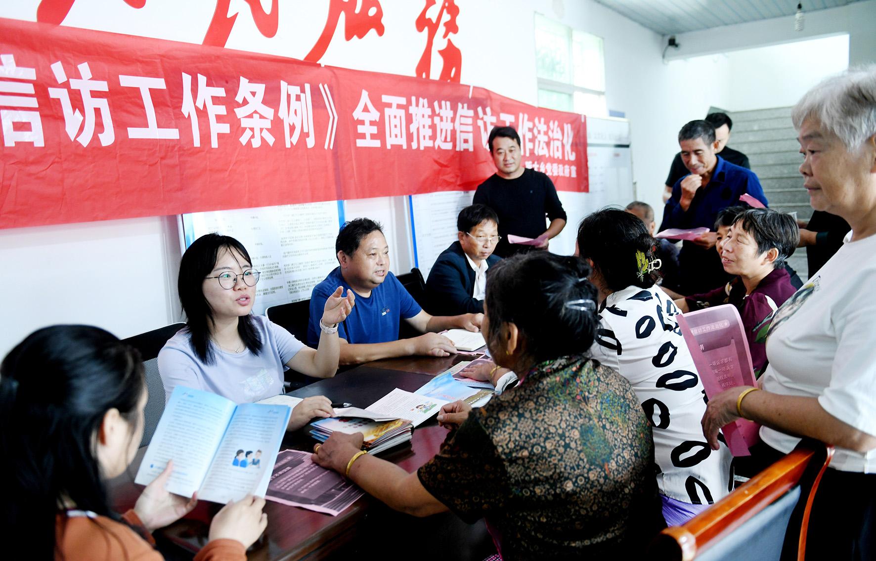 10月11日,江西省德興市昄大鄉(xiāng)信訪干部在定坑村宣講《信訪工作條例》,引導(dǎo)村民依法信訪。