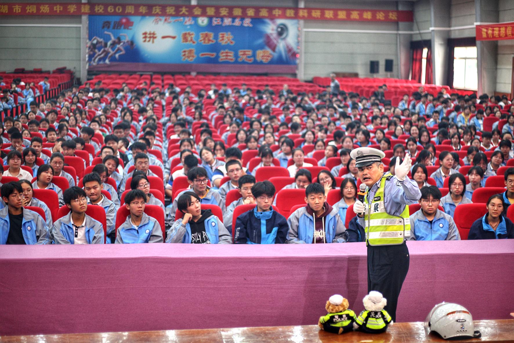 10月11日,安徽省巢湖市公安局交警大隊(duì)民警走進(jìn)烔煬中學(xué)開(kāi)展交通安全教育宣講活動(dòng)。