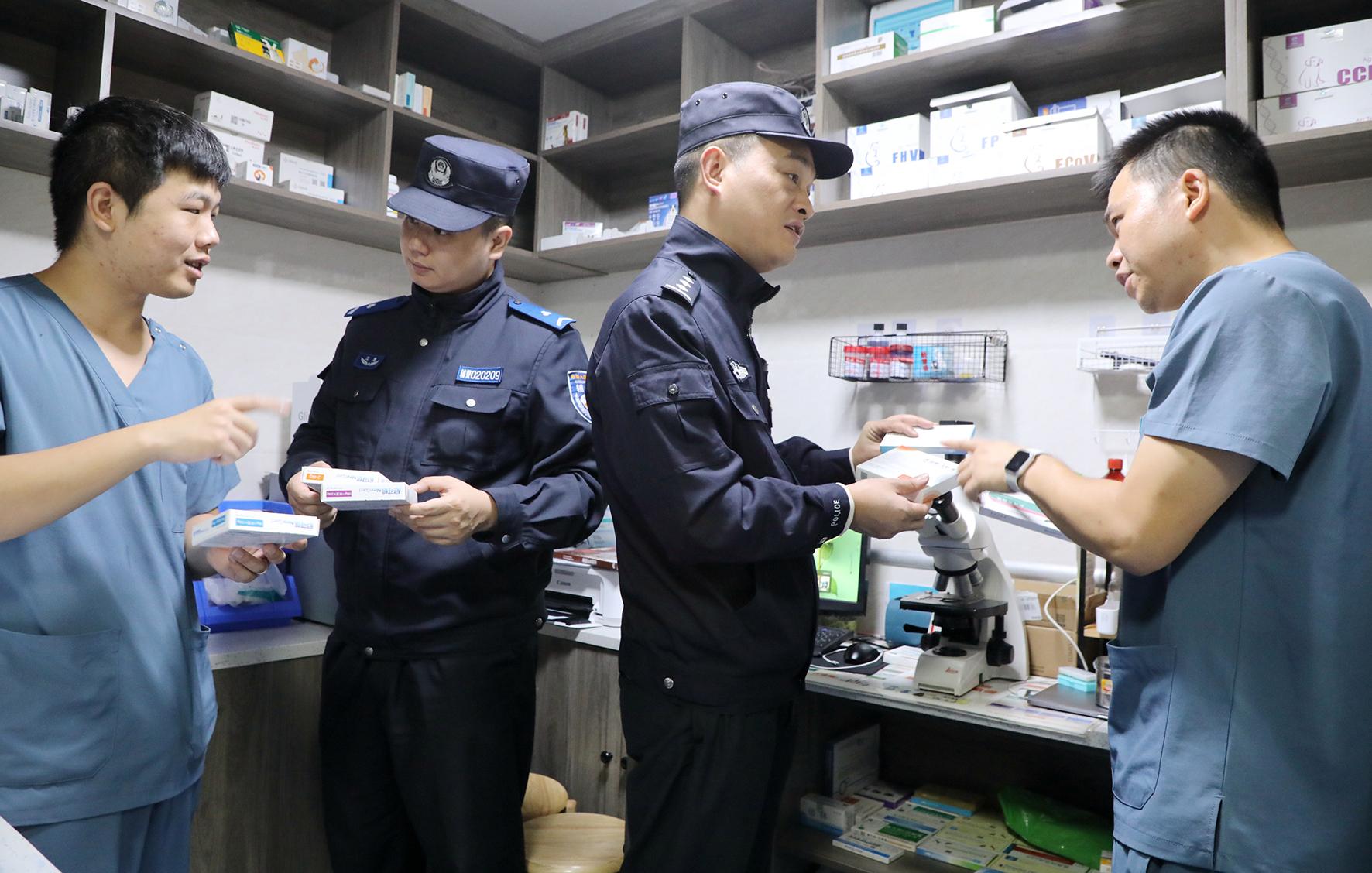 10月14日,江西省九江市公安局潯陽分局人民路派出所民警輔警通過實(shí)地查看、查閱銷售臺(tái)賬、現(xiàn)場(chǎng)詢問等方式開展獸用麻醉藥品和獸用精神藥品排查檢查。