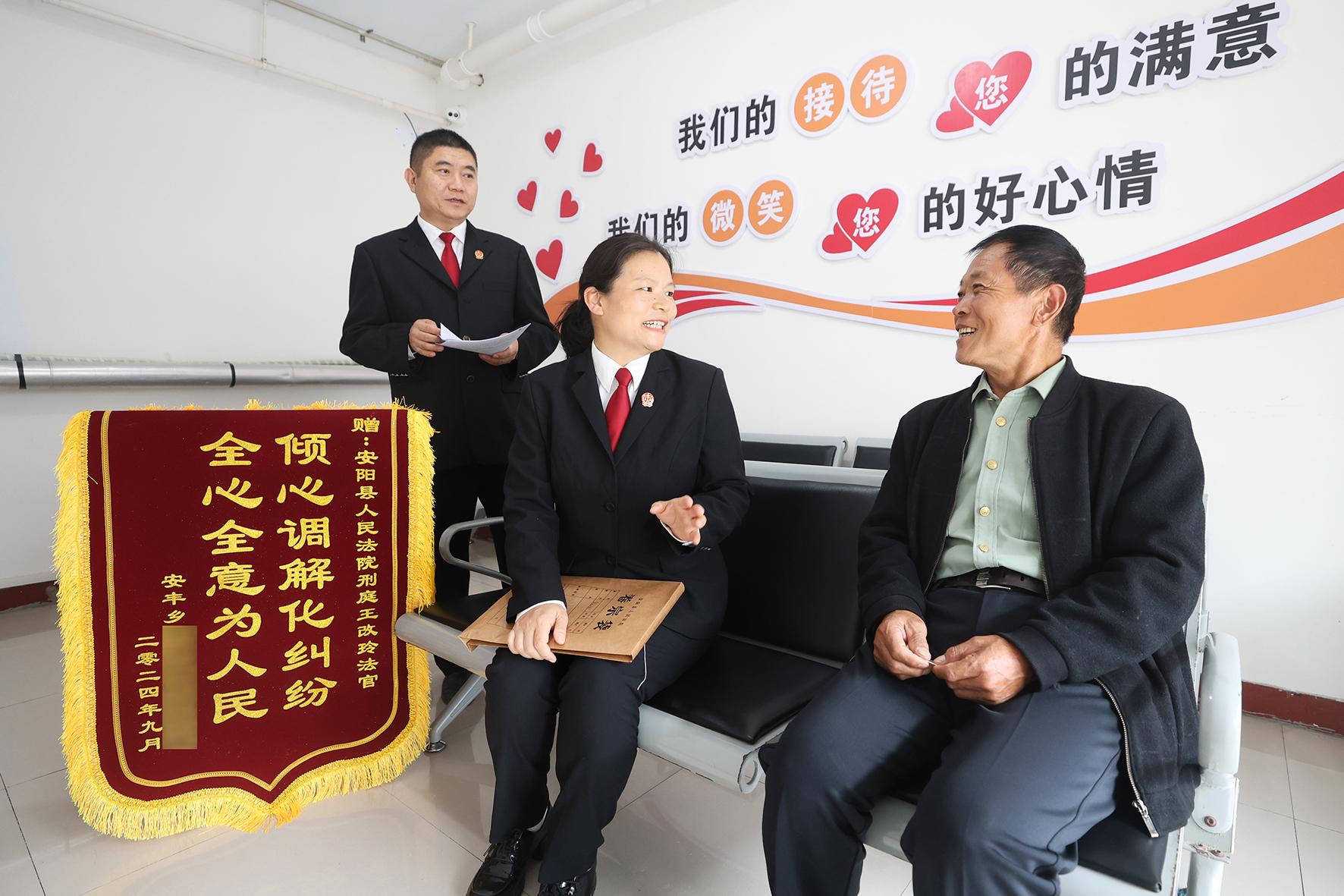 10月14日,當(dāng)事人專(zhuān)程將一面錦旗送到了河南省安陽(yáng)縣人民法院刑事審判庭法官手中,以表達(dá)對(duì)法官用心辦案、高效解紛的誠(chéng)摯感謝。