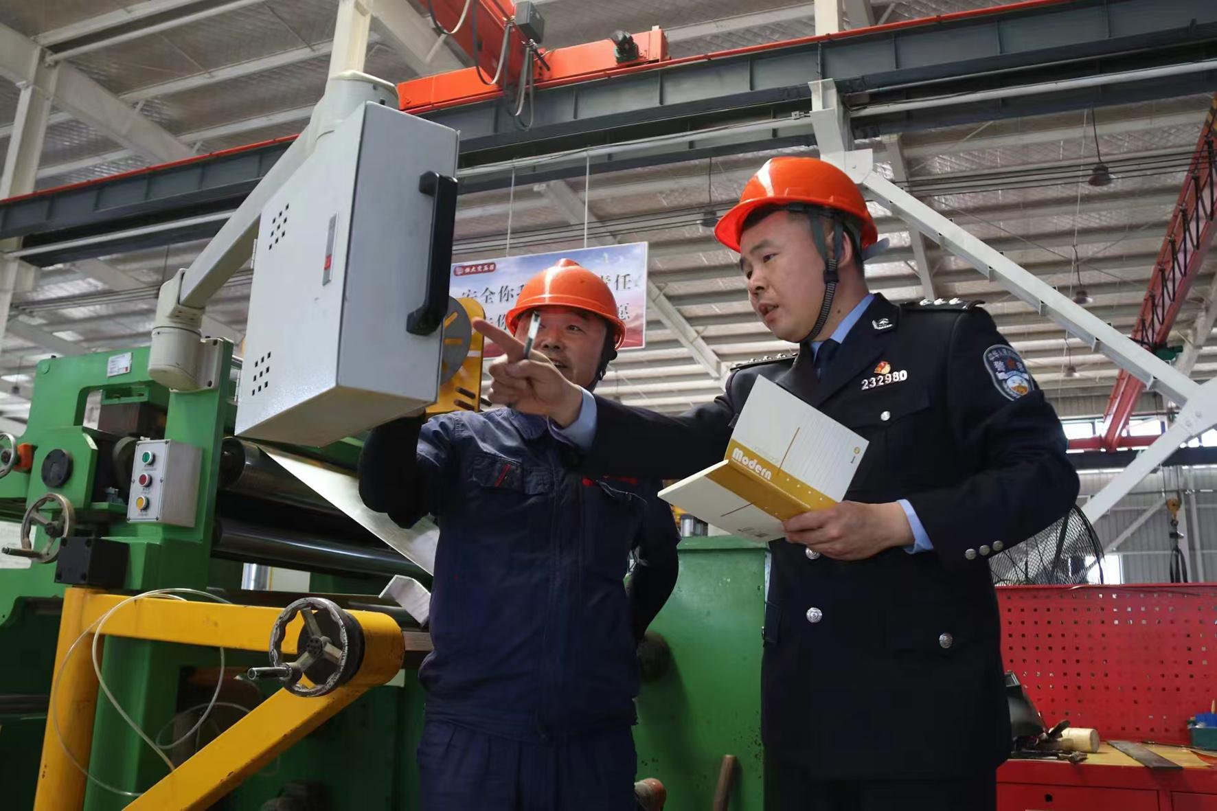 圖為民警走進(jìn)企業(yè)了解情況,開展預(yù)防經(jīng)濟(jì)犯罪知識(shí)宣傳。
