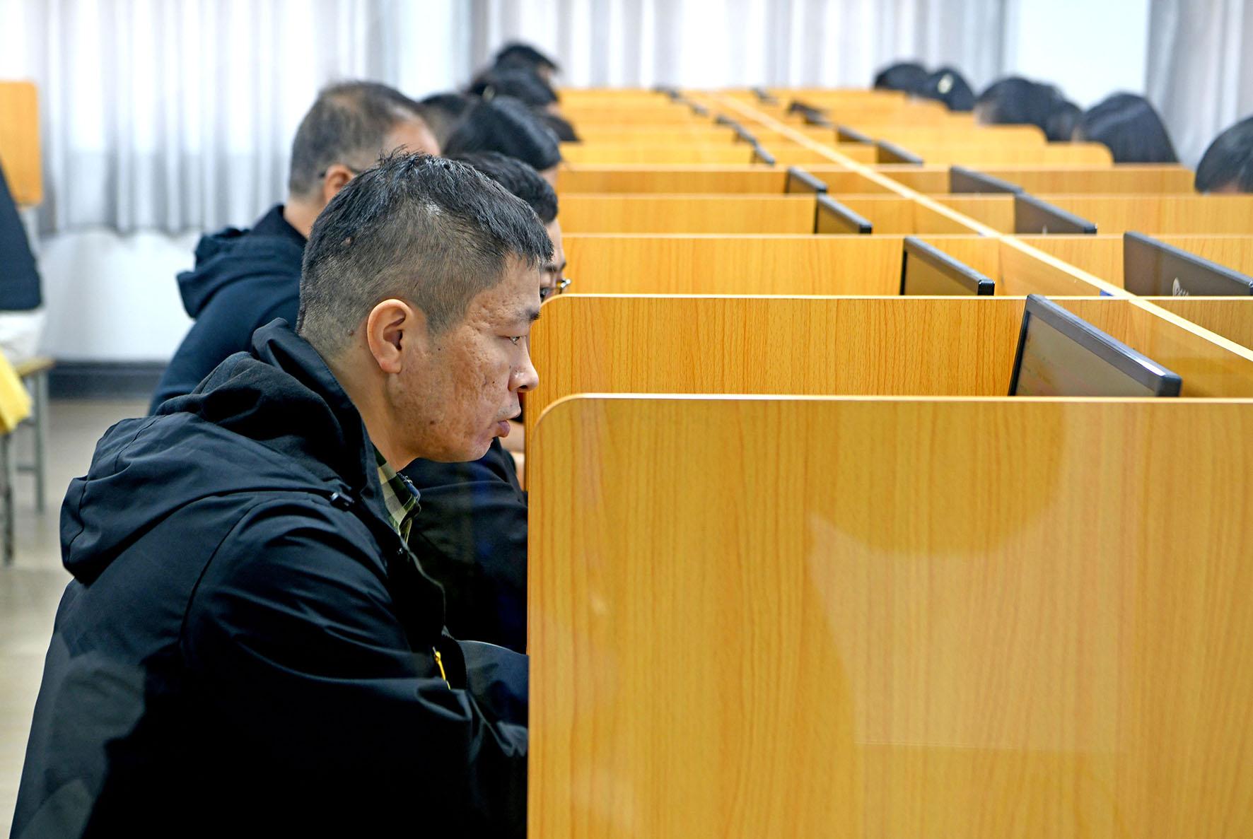 圖為安徽省淮南市考生在安徽工貿(mào)職業(yè)技術(shù)學(xué)院考點參加考試。
