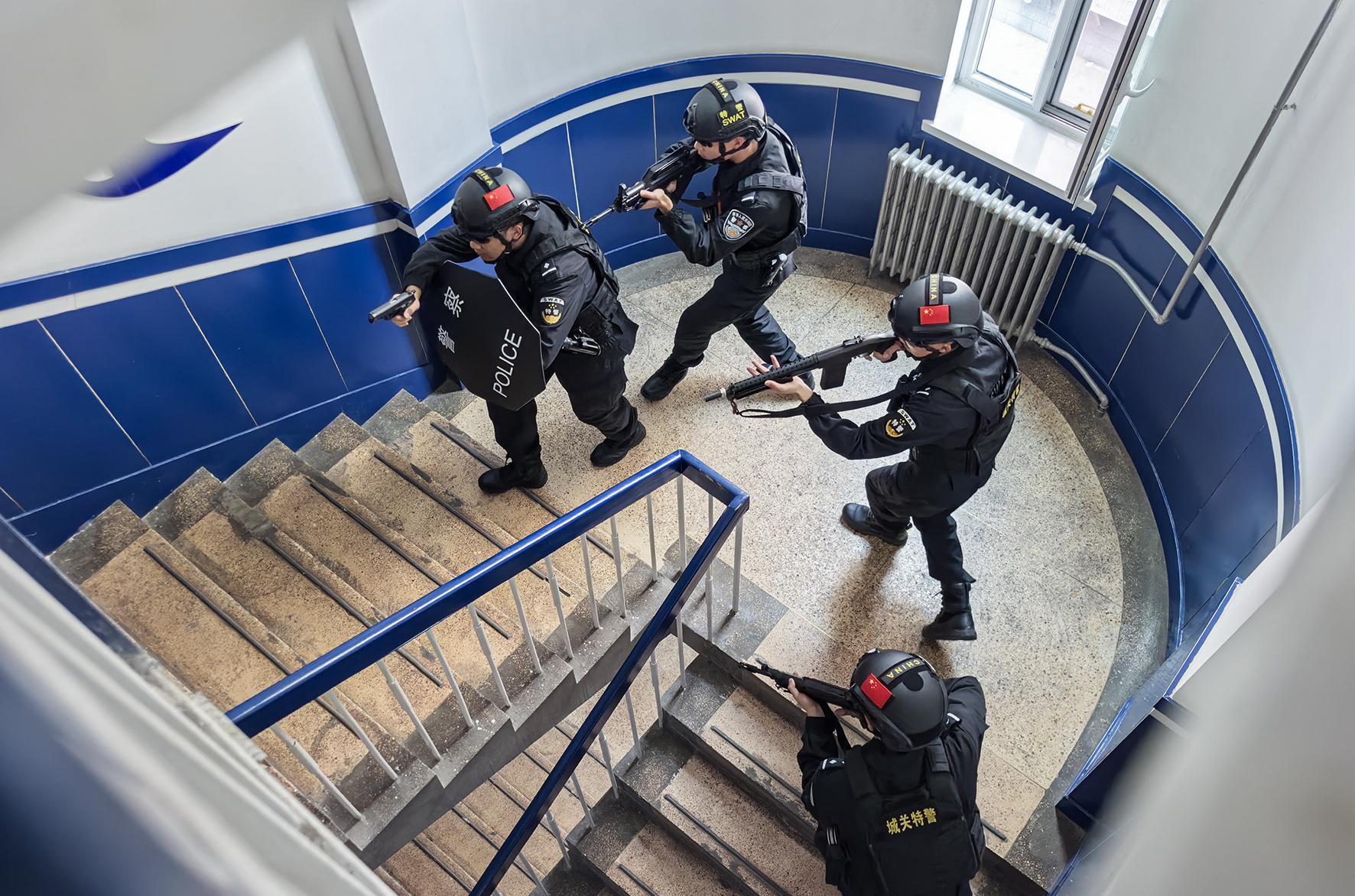 為進一步加強特警隊員反恐實戰(zhàn)能力,提高隊員戰(zhàn)術素養(yǎng)及快速反應能力,10月18日,甘肅省蘭州市公安局城關分局特警大隊組織開展房屋、樓道反恐搜捕戰(zhàn)術訓練。