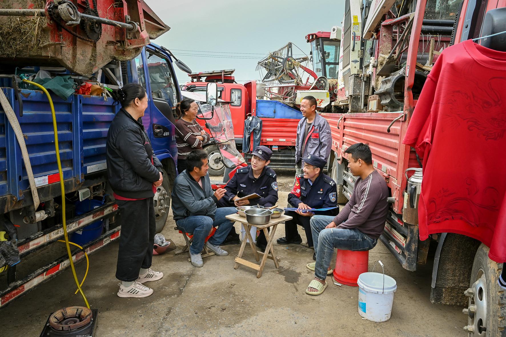 10月21日,安徽省和縣公安局民警向來自江蘇省宿遷市的收割機(jī)手開展防盜、防詐騙和防矛盾糾紛宣傳,同時(shí)發(fā)放警民聯(lián)系卡,全力守護(hù)秋收安全。