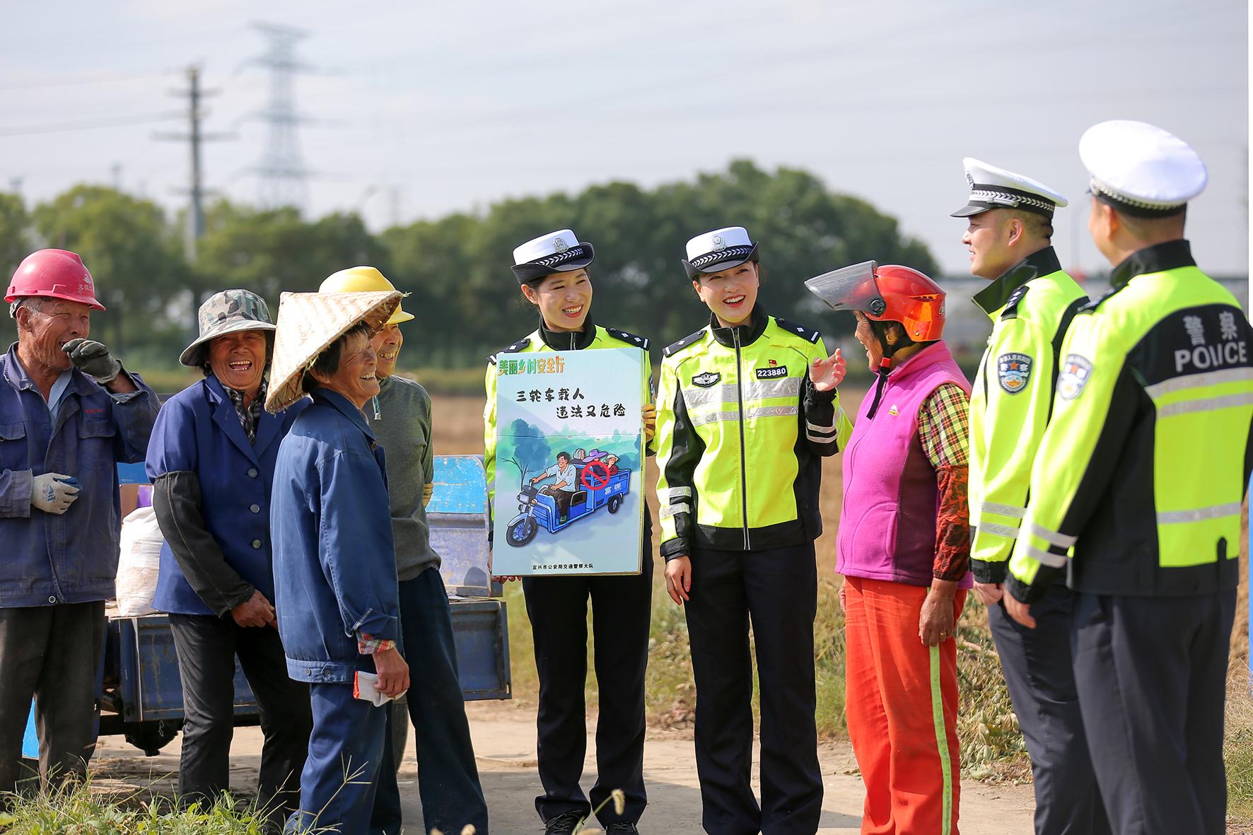 為進(jìn)一步加強(qiáng)農(nóng)忙時(shí)節(jié)鄉(xiāng)村道路交通安全,10月24日,江蘇省宜興市公安局交警大隊(duì)民警走進(jìn)徐舍鎮(zhèn)美棲村開展道路交通安全宣傳活動。