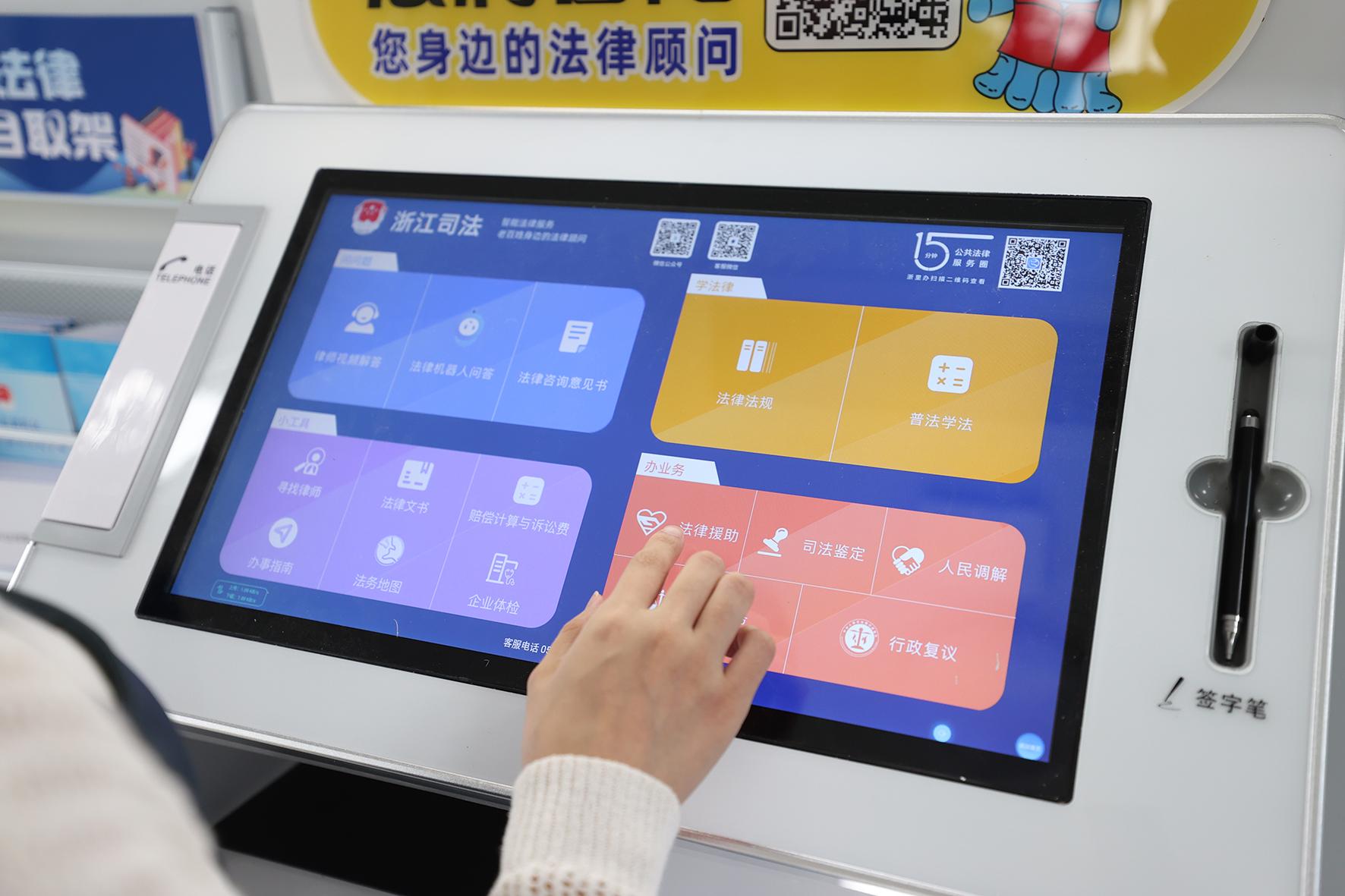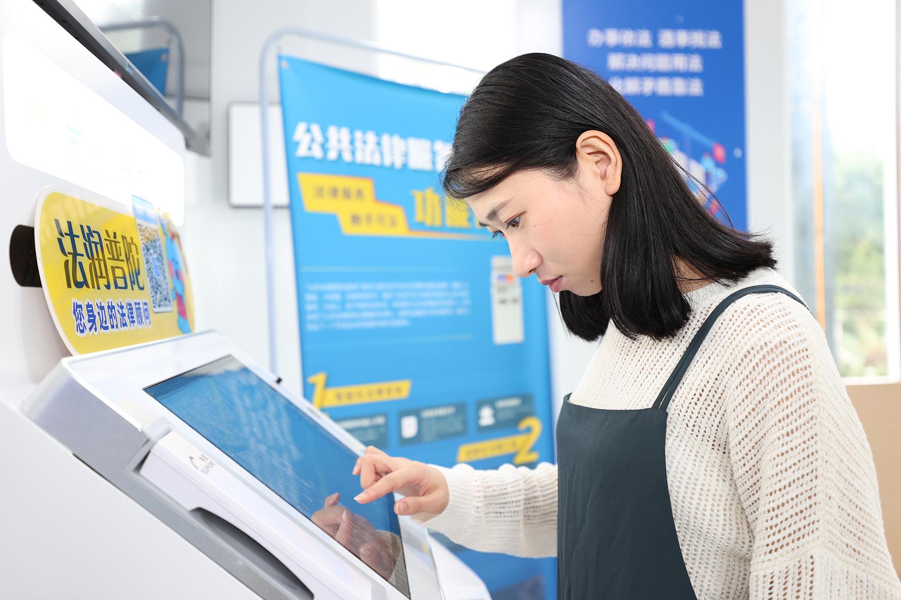 10月28日,浙江省舟山市普陀區(qū)市民正在24小時法超市內(nèi)使用公共法律服務自助機辦理相關業(yè)務。