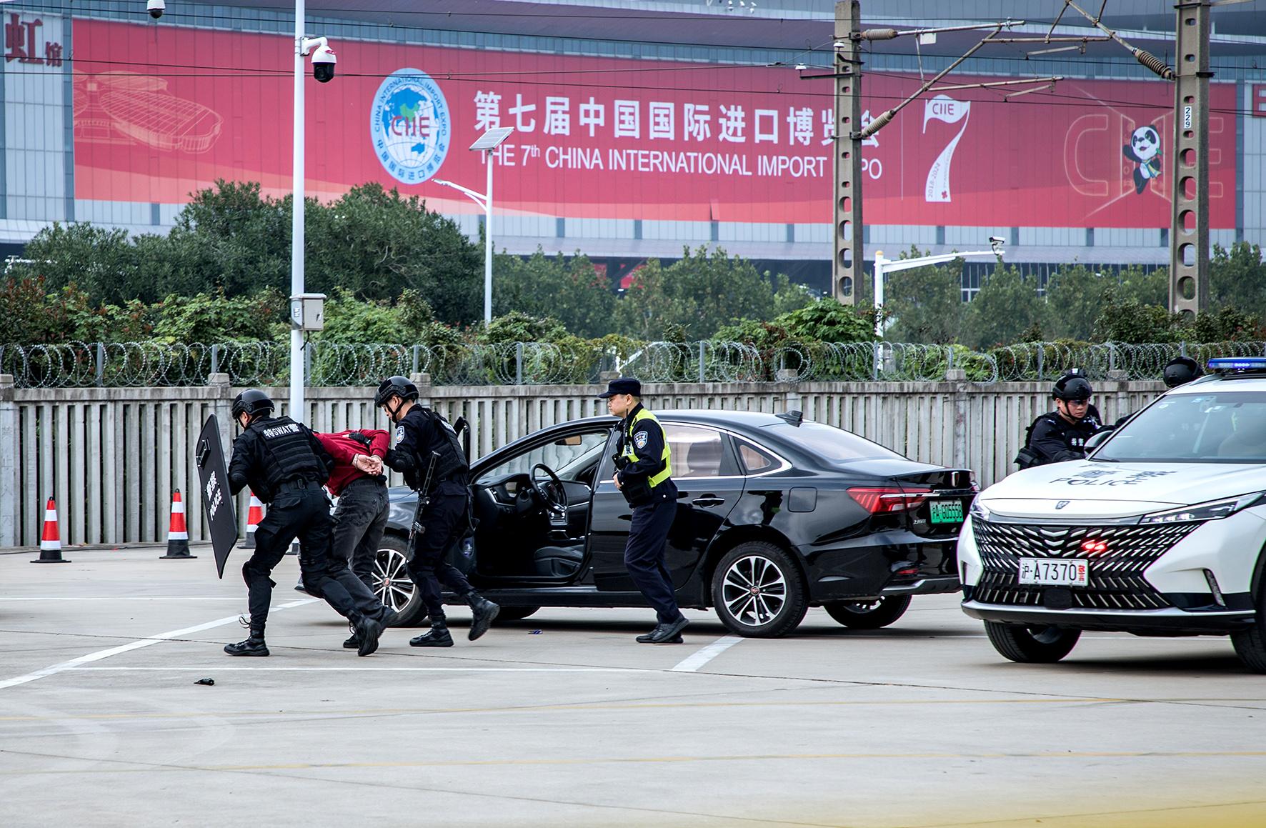 為迎接第七屆中國(guó)國(guó)際進(jìn)口博覽會(huì)順利召開(kāi),10月28日,上海市公安局閔行分局組織開(kāi)展全警實(shí)戰(zhàn)大練兵。