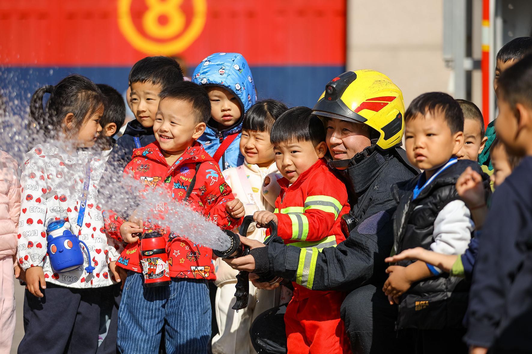 11月8日,山東省青島市李滄區(qū)消防救援大隊(duì)李村站開展“消防開放日”活動,邀請轄區(qū)幼兒園小朋友走進(jìn)消防營區(qū),通過學(xué)習(xí)消防安全知識、疏散逃生體驗(yàn)、消防裝備器材體驗(yàn)等活動,增長消防安全知識,提高自身的消防安全意識和自防自救能力。