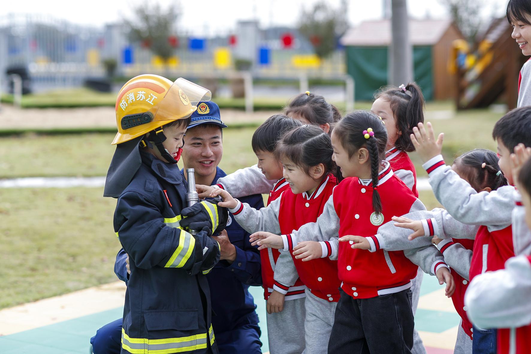 11月8日,江蘇省興化市消防救援大隊聯(lián)合文峰幼兒園開展“萌娃學消防 安全伴成長”主題活動。
