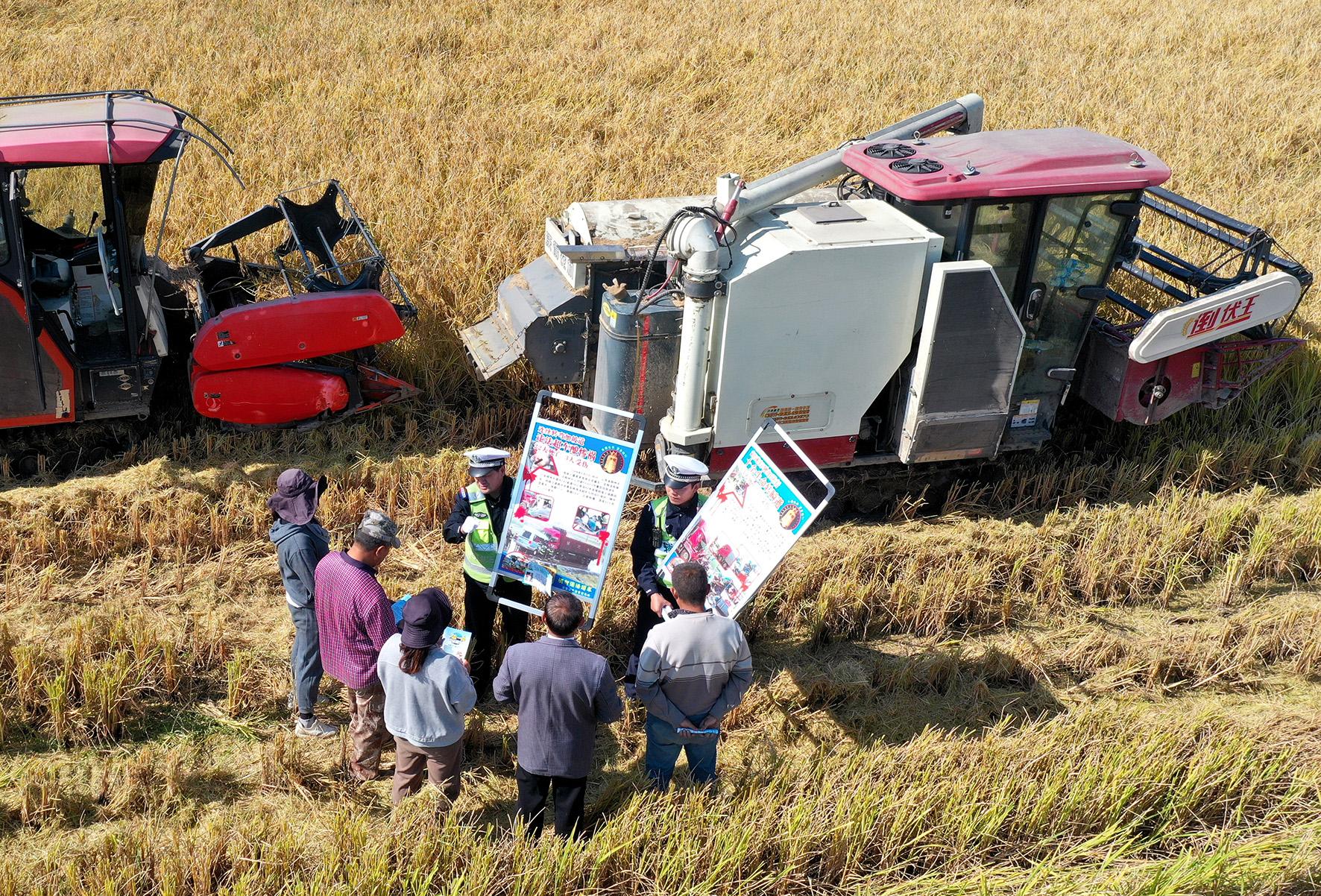 11月7日,安徽省蕪湖市公安局交警支隊(duì)鳩江大隊(duì)民警深入鳩江區(qū)湯溝鎮(zhèn),向秋收群眾宣傳交通安全知識(shí)。
