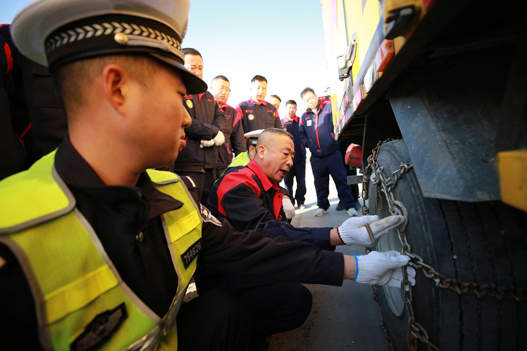 為進一步提升?;愤\輸企業(yè)應(yīng)對惡劣天氣下運輸安全保障能力,11月13日,遼寧省阜新市公安局太平大隊深入轄區(qū)運輸企業(yè),開展了一場防滑鏈安裝演練活動。