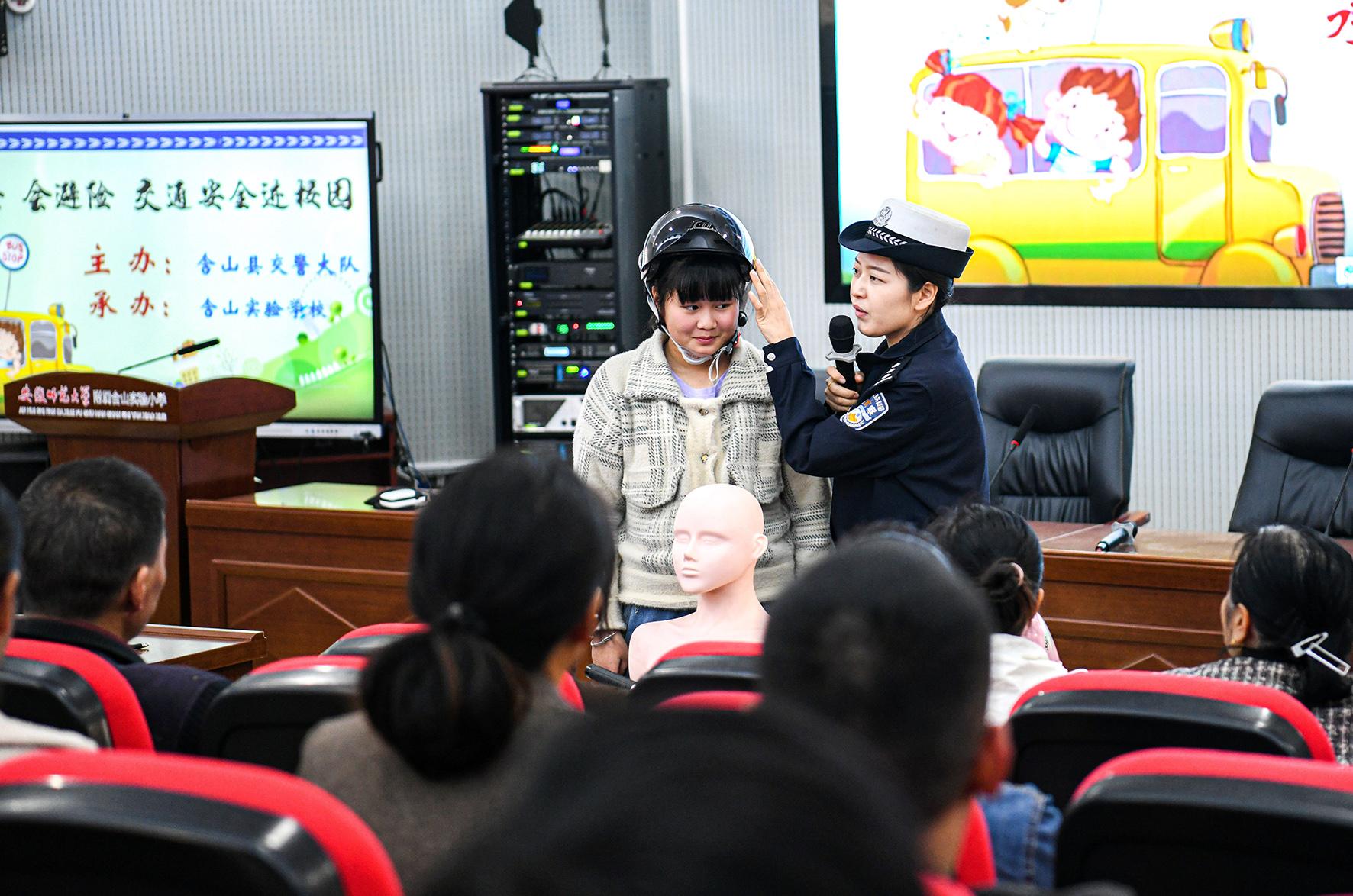 11月15日,安徽省馬鞍山市含山縣公安局交管大隊(duì)組織民警走進(jìn)轄區(qū)校園,借助開(kāi)家長(zhǎng)會(huì)的有利時(shí)機(jī)開(kāi)展交通安全宣傳教育活動(dòng),與學(xué)生、家長(zhǎng)面對(duì)面話(huà)“安全”。