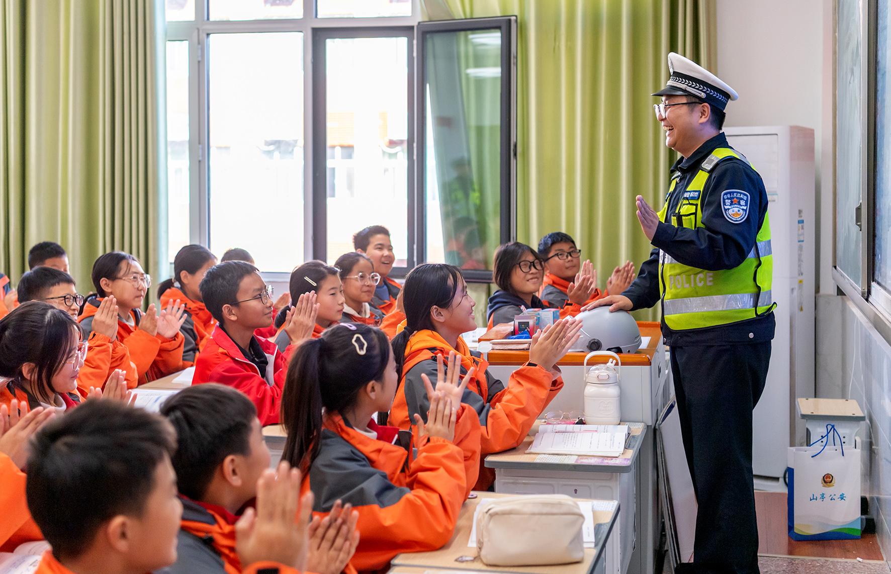 11月22日,山東省棗莊市公安局山亭分局交警大隊民輔警走進棗莊市第四十中學西校區(qū),開展交通安全宣傳教育活動。