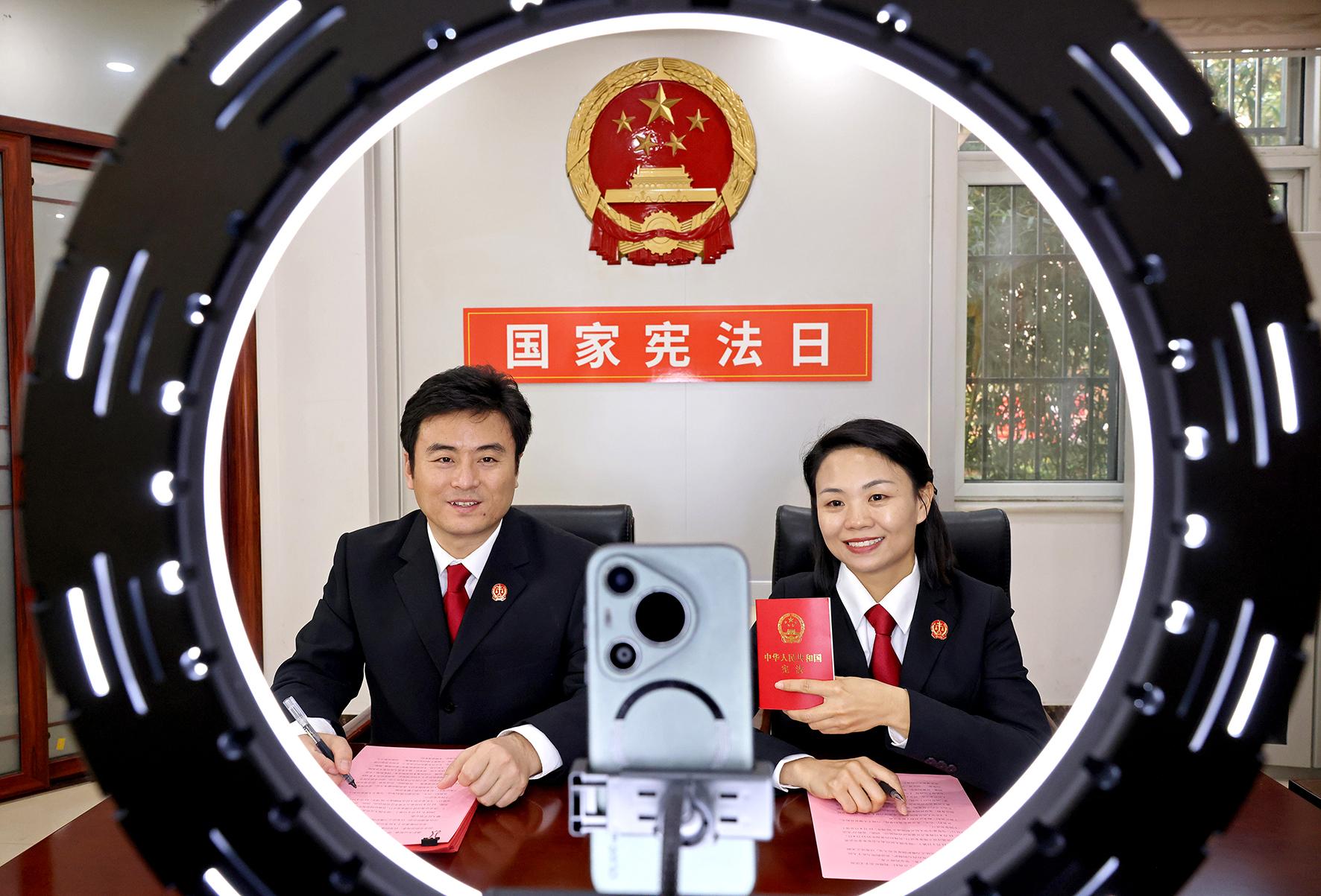 12月3日,山東省棗莊市市中區(qū)人民法院開展以“大力弘揚(yáng)憲法精神 推動進(jìn)一步全面深化改革”為主題的宣傳活動,兩名法官通過線上直播方式向觀眾宣傳憲法知識。