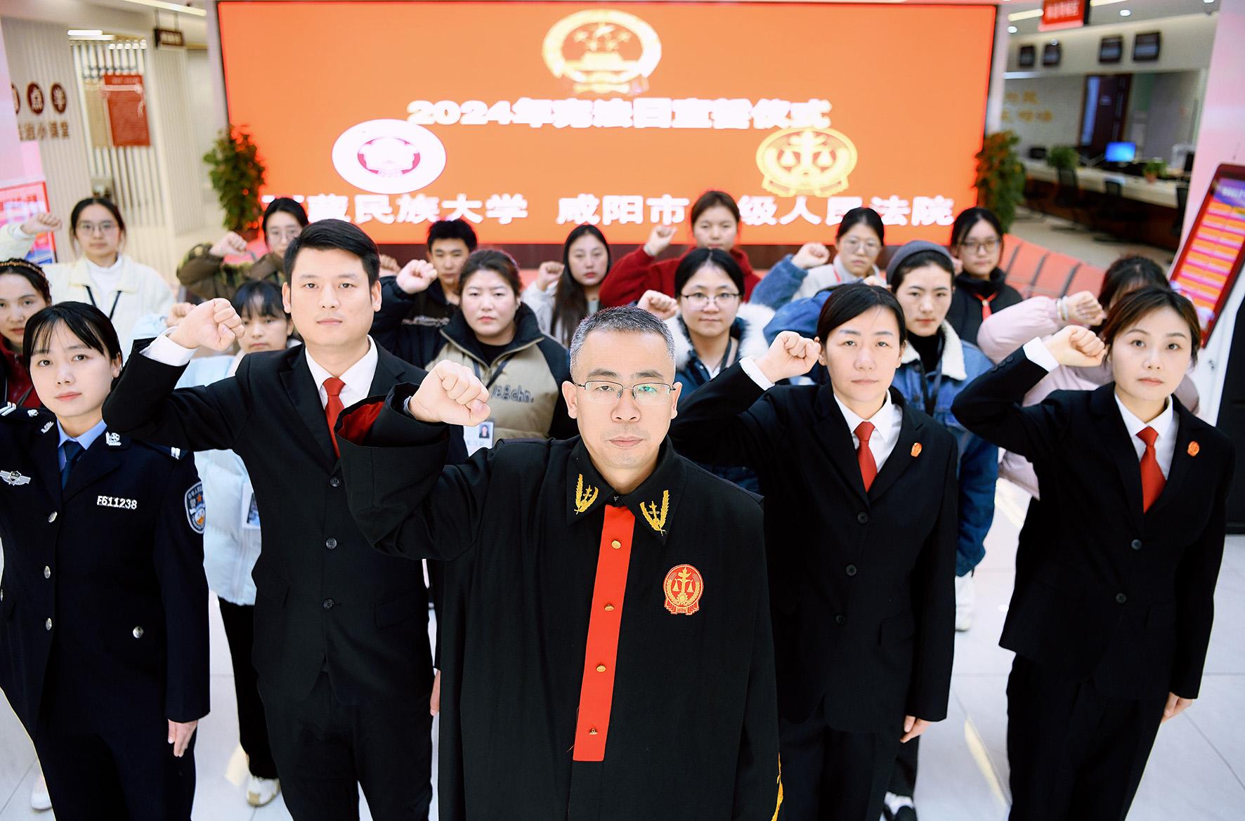 12月2日,陜西省咸陽市中級人民法院未成年人案件審判庭組織干警、實習(xí)生開展以“大力弘揚(yáng)憲法精神 推動進(jìn)一步全面深化改革”為主題的憲法宣傳周宣誓活動。
