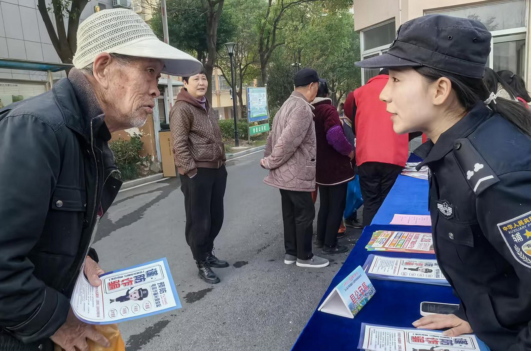 12月11日,安徽省馬鞍山市含山縣公安局刑偵大隊(duì)組織民輔警走進(jìn)大慶社區(qū)開(kāi)展預(yù)防養(yǎng)老詐騙宣傳活動(dòng)。