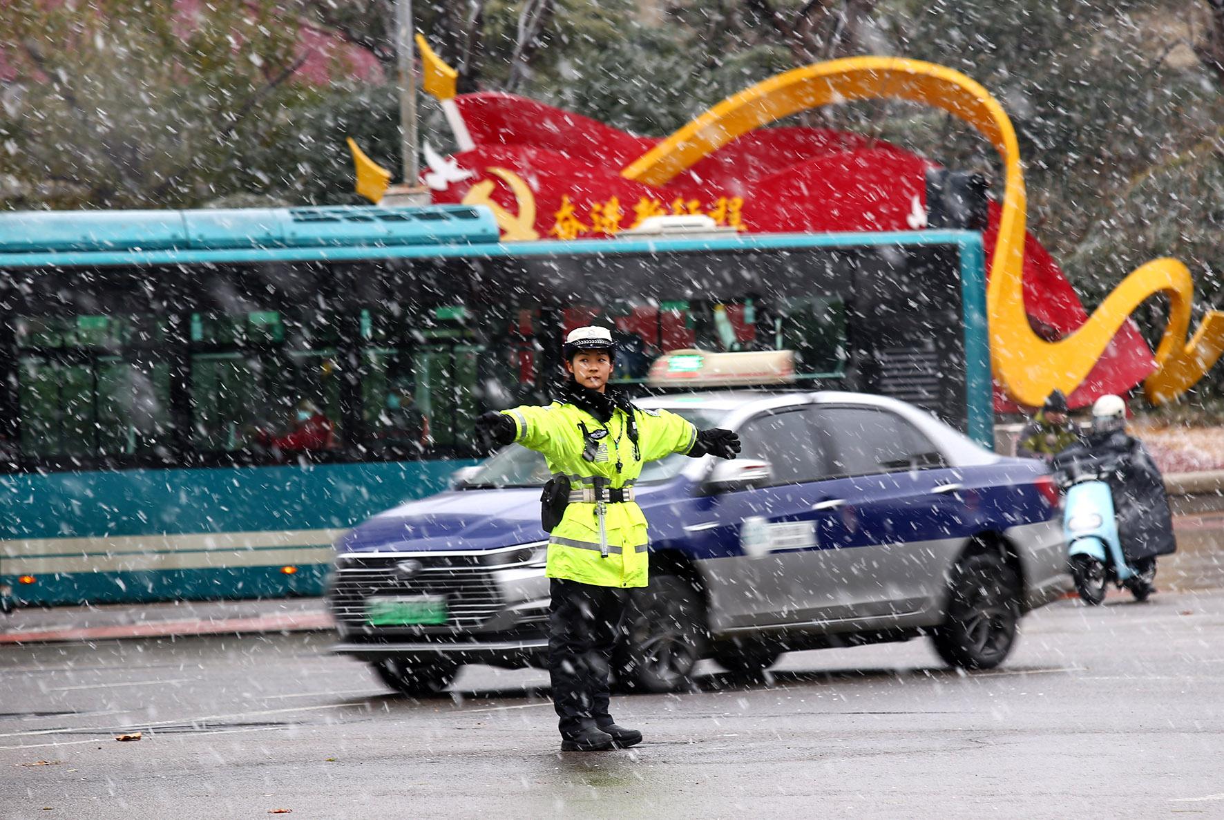 12月13日,山東省濟南市迎來降雪天氣。濟南市公安局交警支隊市中區(qū)大隊啟動惡劣天氣應急預案,加大對重點路段、十字路口的交通疏導力度,為群眾安全出行保駕護航。
