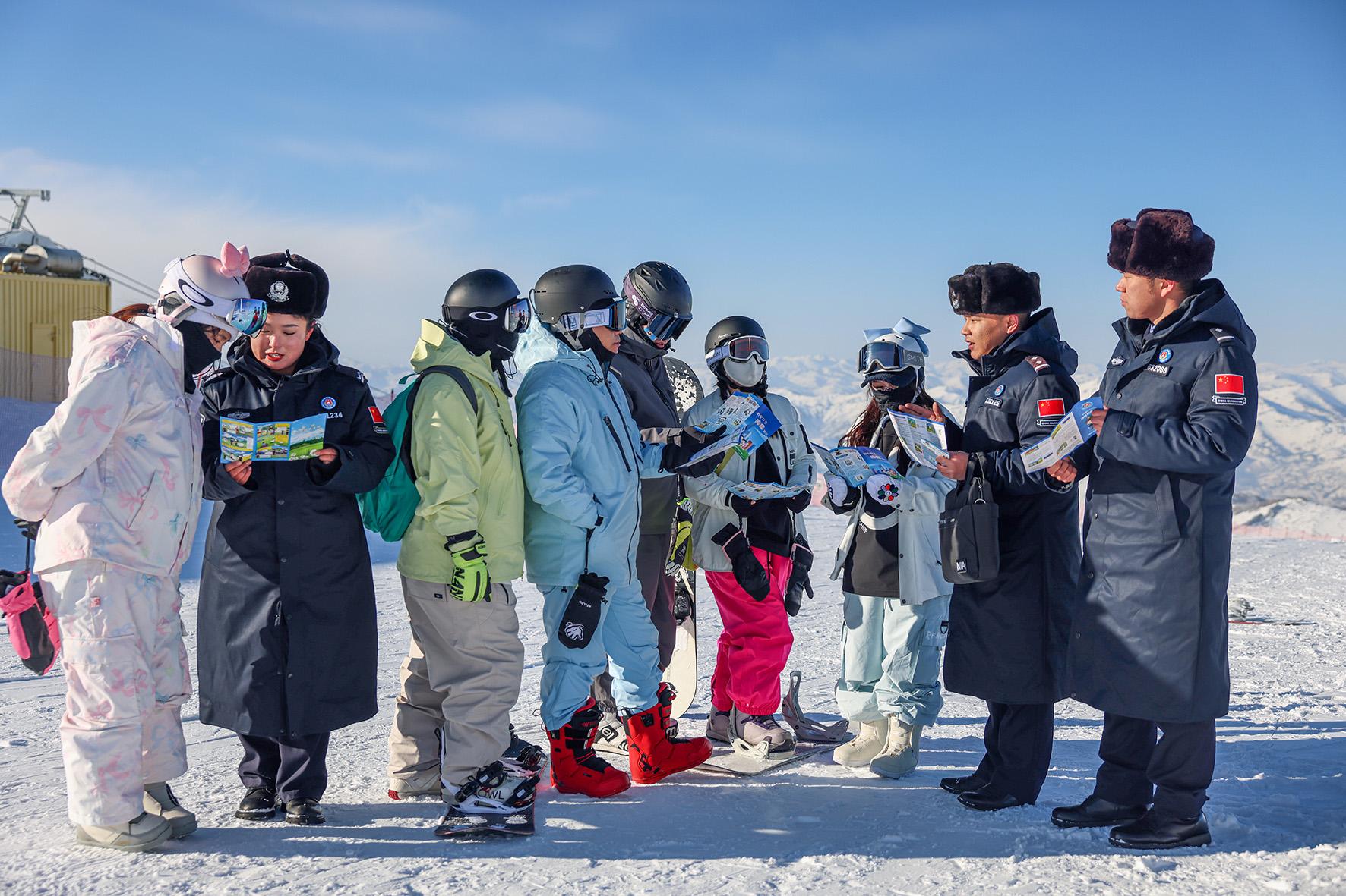 12月17日,新疆出入境邊防檢查總站阿勒泰邊境管理支隊(duì)吐爾洪邊境派出所民警對(duì)轄區(qū)可可托?;﹫?chǎng)開展冬季冰雪旅游季護(hù)航行動(dòng),重點(diǎn)對(duì)滑雪場(chǎng)雪板寄存安防管理和關(guān)鍵設(shè)施進(jìn)行安全檢查,宣傳邊境法律法規(guī)。