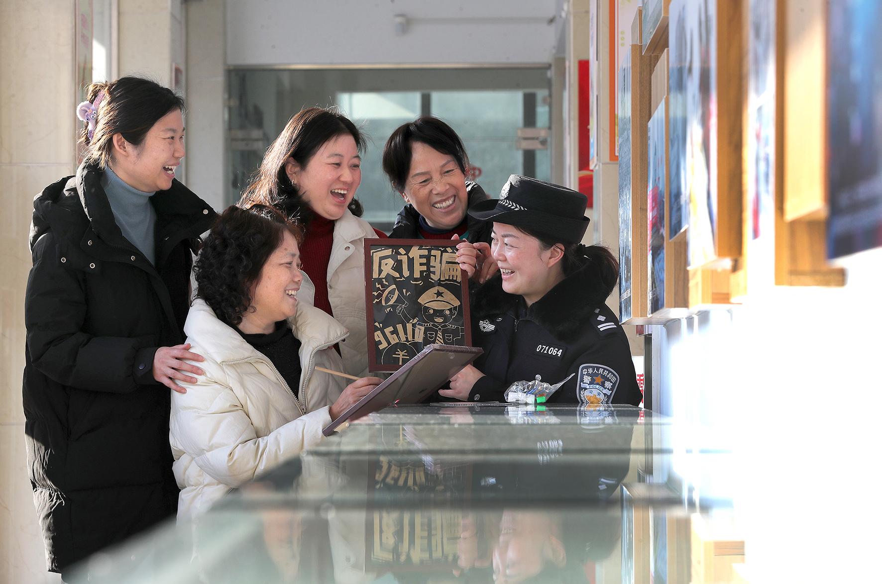 12月19日,湖北省荊門(mén)市公安局高新區(qū)·掇刀區(qū)分局白廟派出所社區(qū)民警在長(zhǎng)源熱電社區(qū),通過(guò)與居民共繪非遺“反詐金箔畫(huà)”,開(kāi)展防范電信詐騙普法宣傳,以提高社區(qū)居民的法治意識(shí)和識(shí)騙防騙能力。