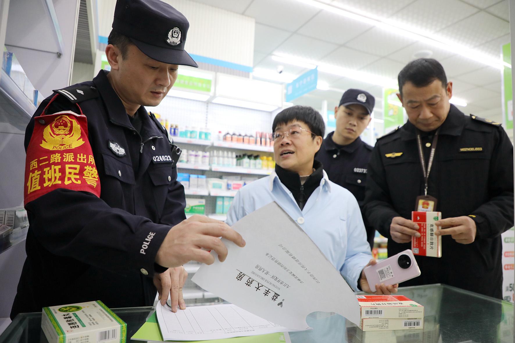12月24日,江西省九江市公安局八里湖分局西二路派出所民警聯(lián)合市場(chǎng)監(jiān)督部門工作人員,深入轄區(qū)藥店對(duì)麻醉藥品和精神藥品的銷售情況等進(jìn)行檢查,嚴(yán)防流入非法渠道。