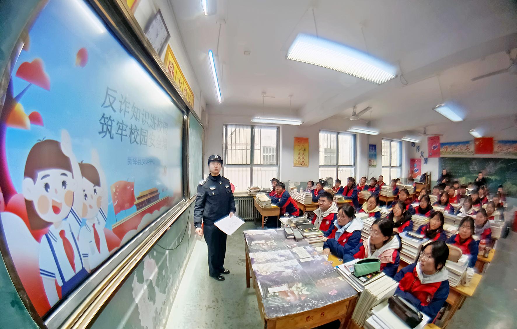 12月24日,山西省運(yùn)城市新絳縣公安局反詐中心民警在新絳縣職業(yè)教育中心開展寒假前的反詐宣傳活動(dòng)。