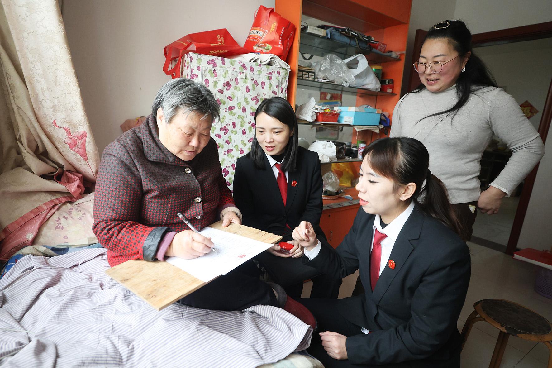 12月25日下午,河南省安陽縣人民法院干警冒著嚴(yán)寒來到高莊鎮(zhèn),上門為因交通事故受傷的魏老太辦理立案和委托手續(xù)。