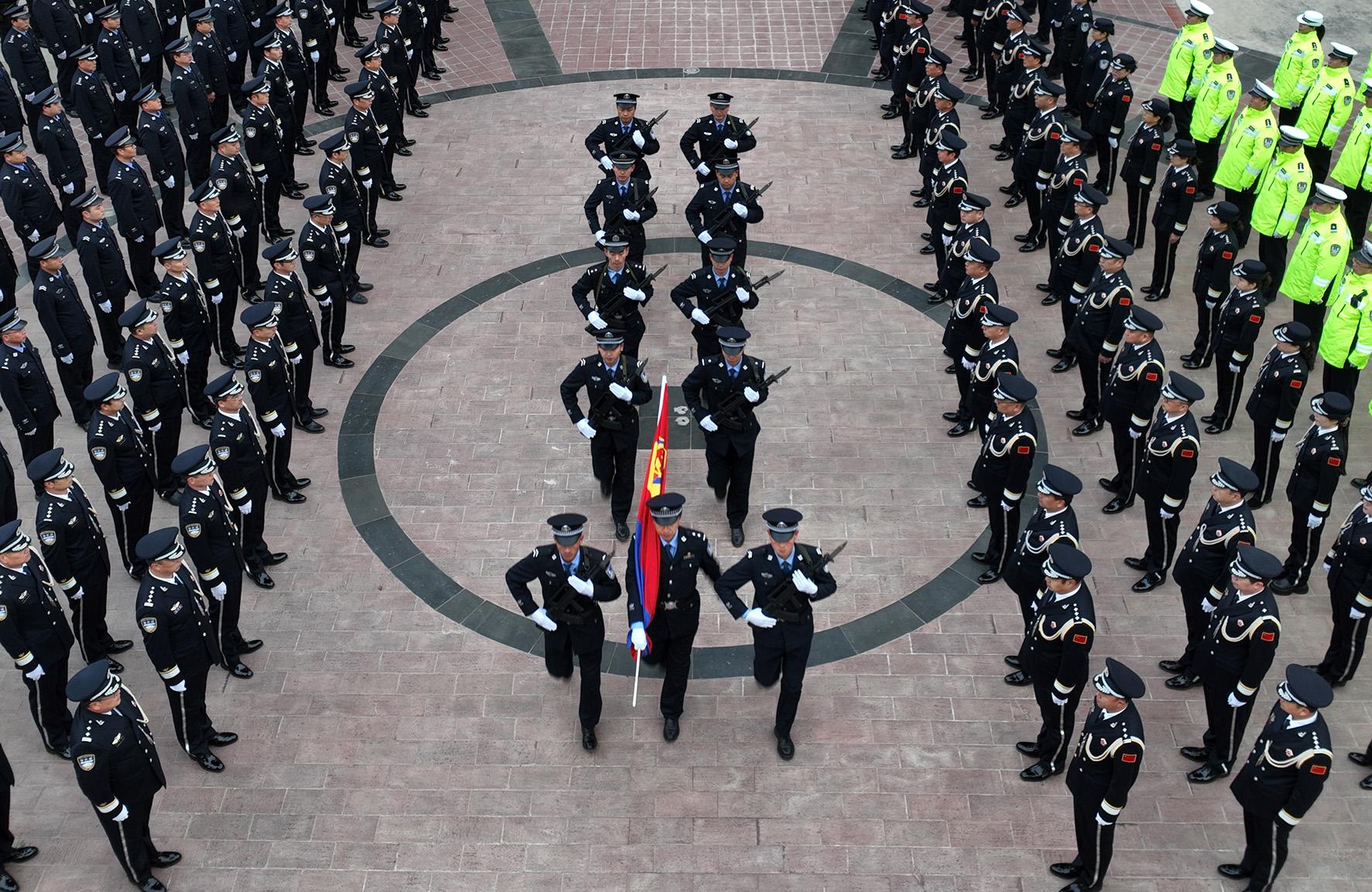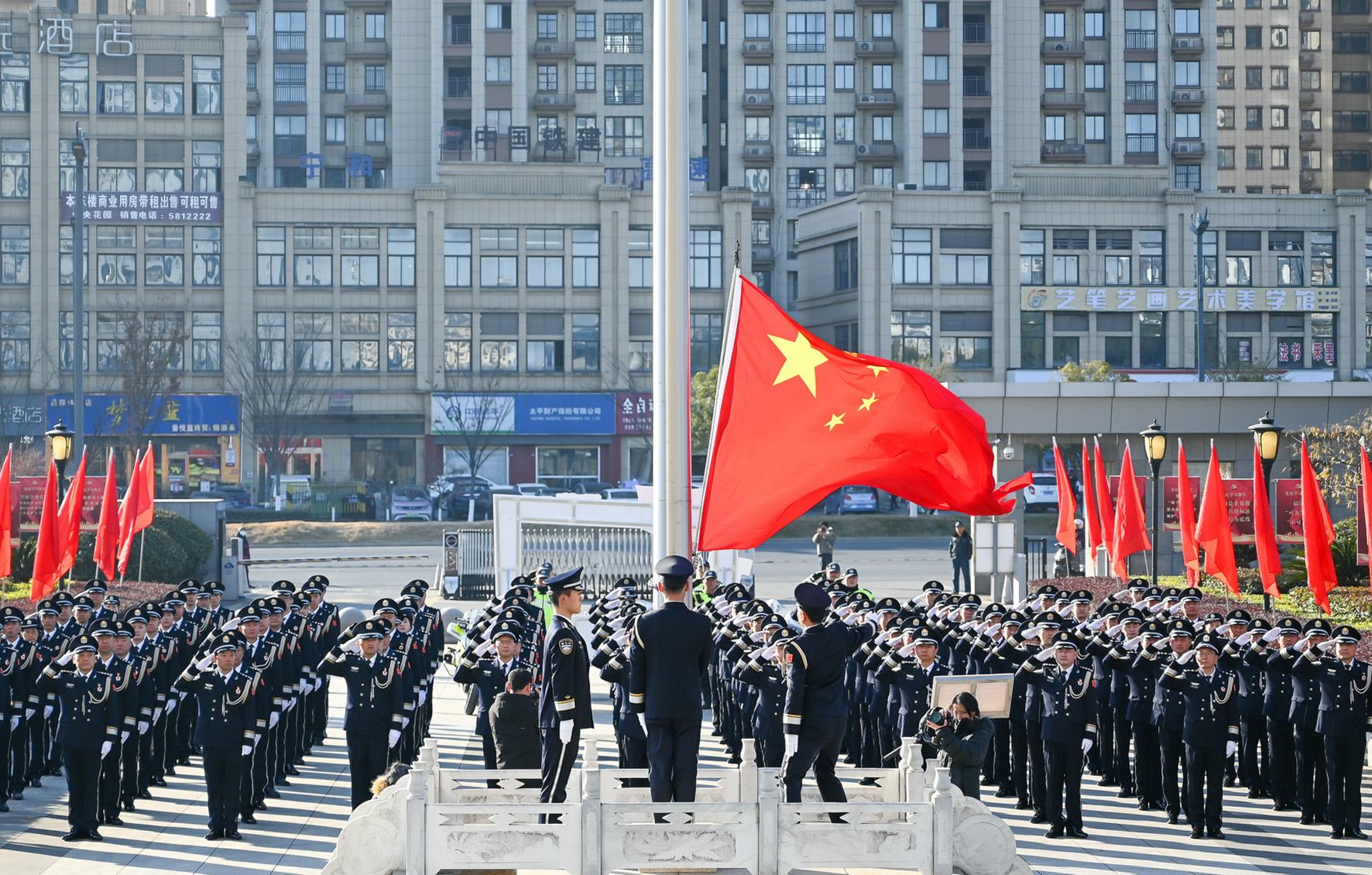 1月10日,安徽省巢湖市公安局組織開展升旗儀式暨授獎榮譽儀式。