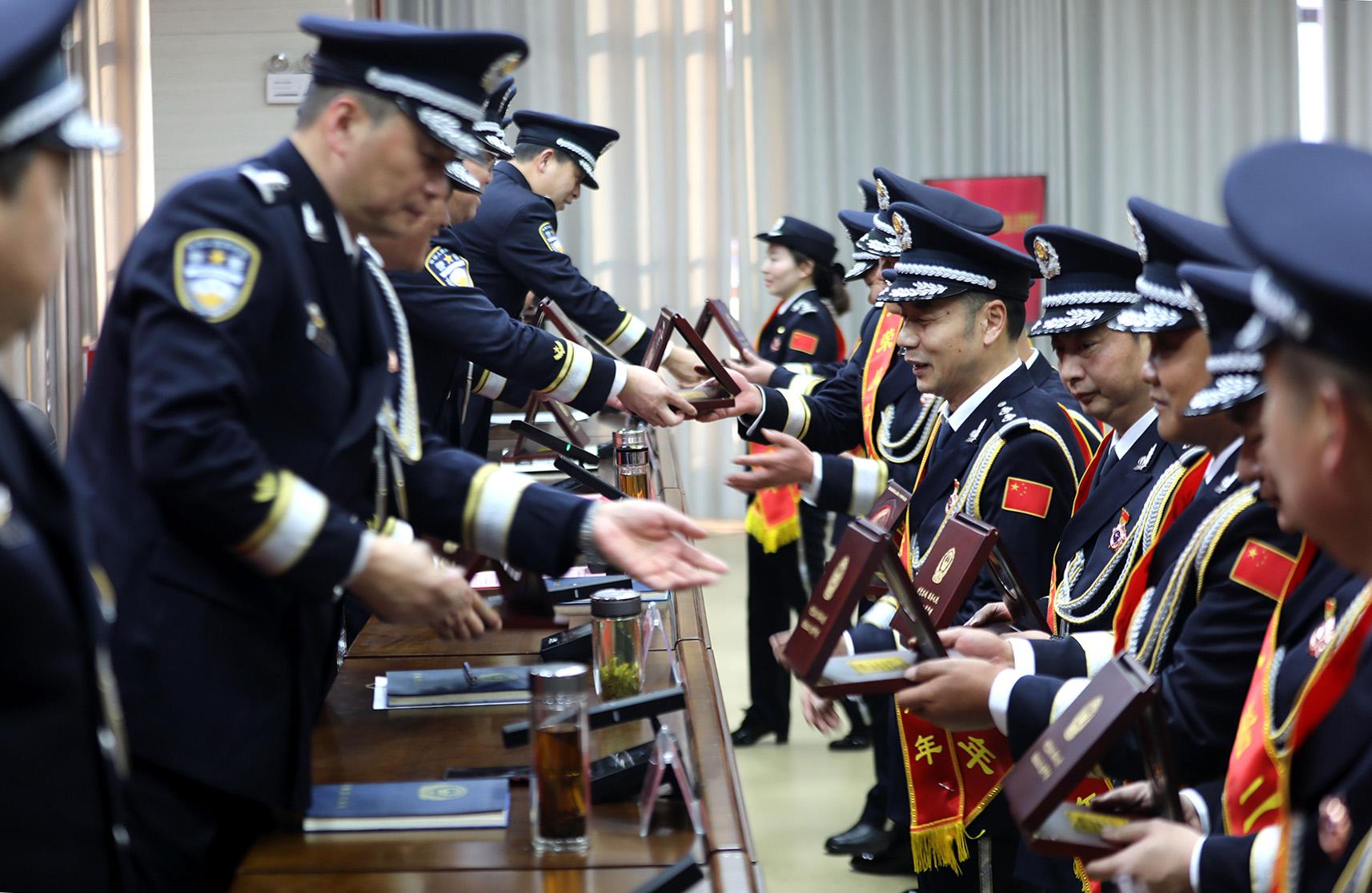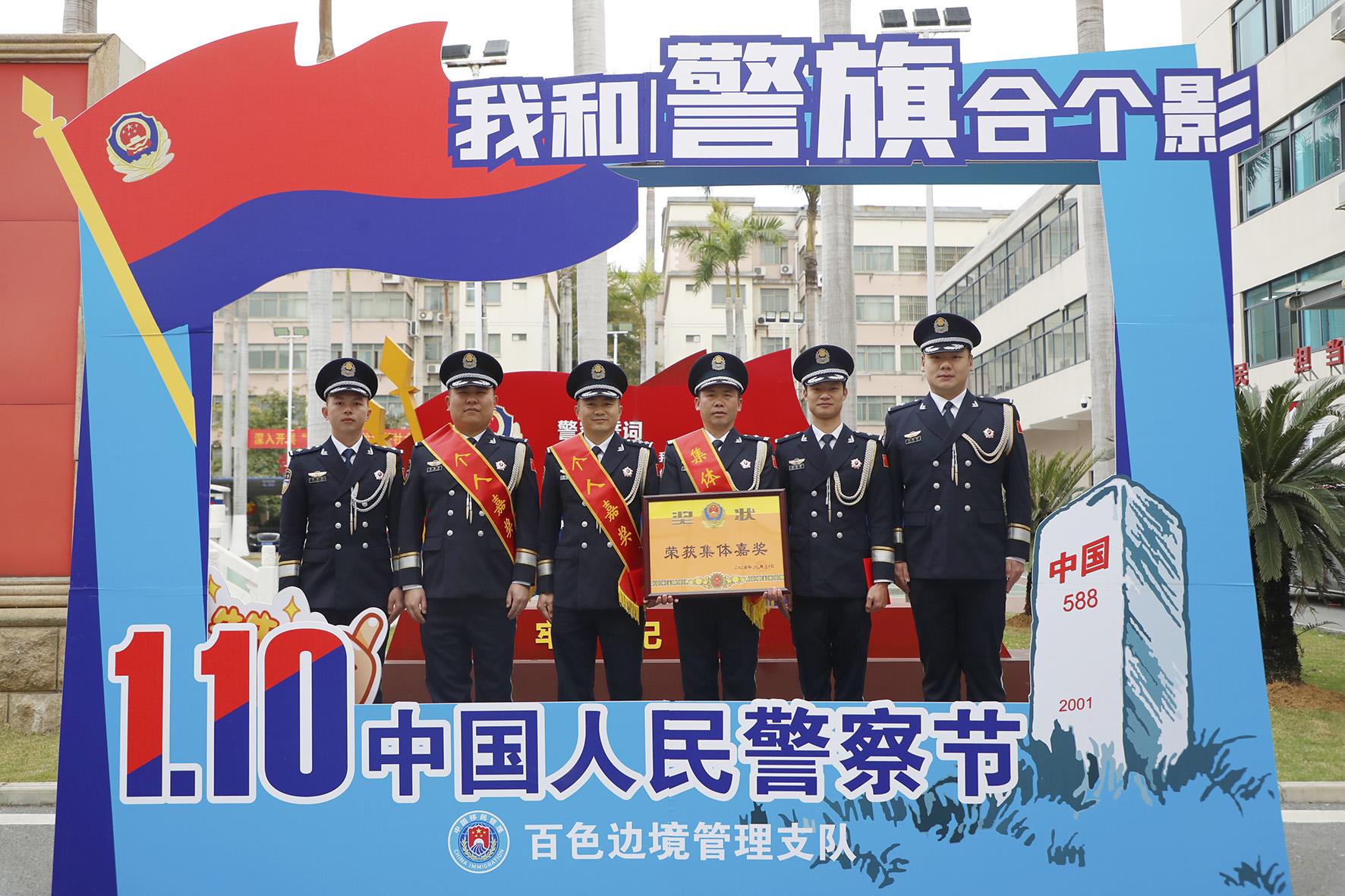 1月10日,廣西百色邊境管理支隊舉行警察節(jié)榮譽儀式,為立功受獎的3個集體、18名民警、晉升警銜的46名民警代表頒發(fā)獎章、證書。