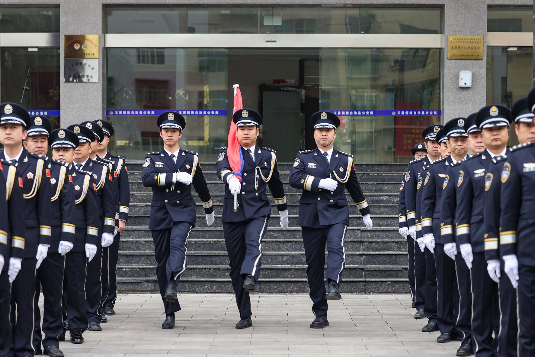 1月10日,貴州省玉屏侗族自治縣公安局開展升警旗儀式、警營開放、整裝巡邏等活動,慶祝第五個中國人民警察節(jié)活動。