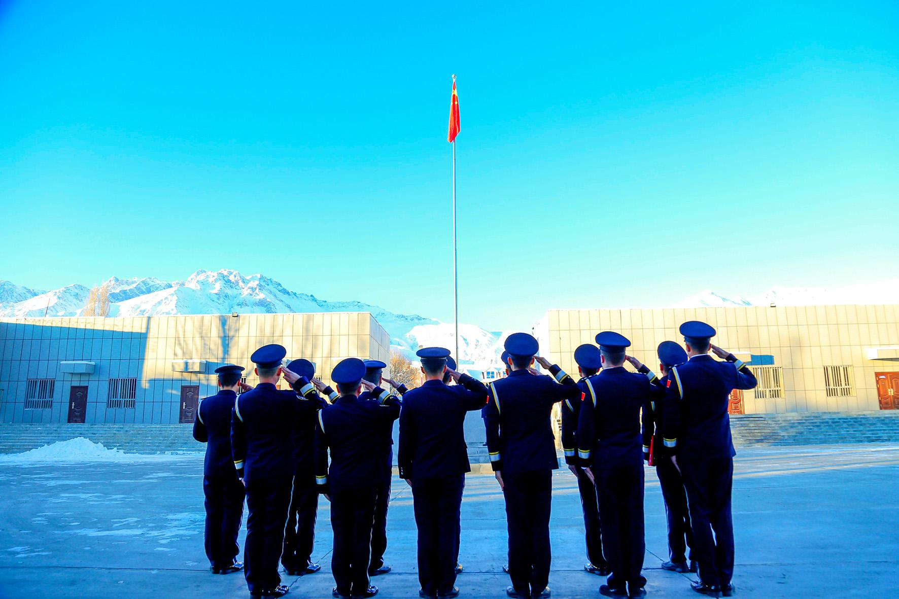 1月10日,新疆喀什邊境管理支隊塔什庫爾干邊境管理大隊舉行中國人民警察節(jié)升旗及宣誓儀式。