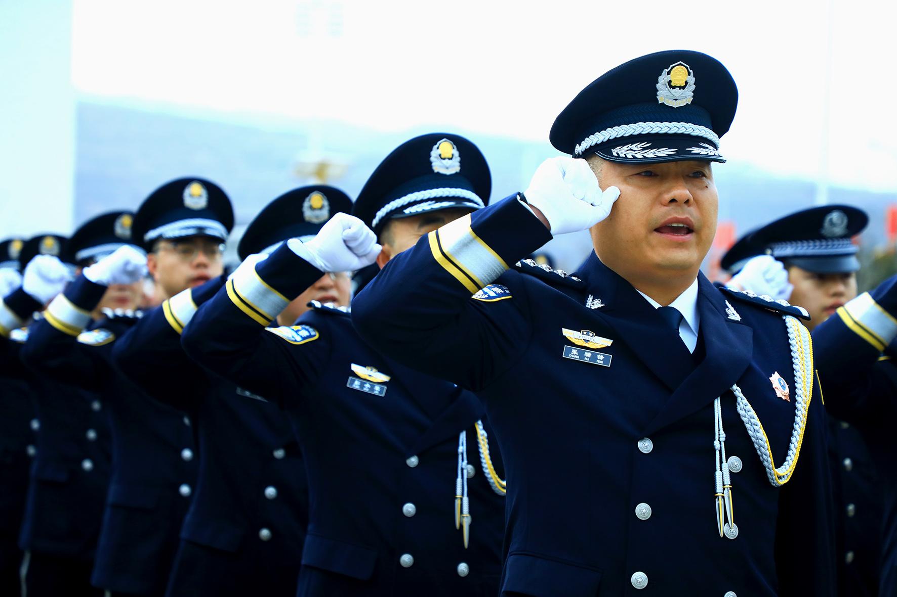 1月10日,甘肅隴南禮縣公安局舉行慶祝第五個中國人民警察節(jié)升警旗儀式,重溫入警誓詞,進一步增強民警的職業(yè)榮譽感、自豪感和責任感。