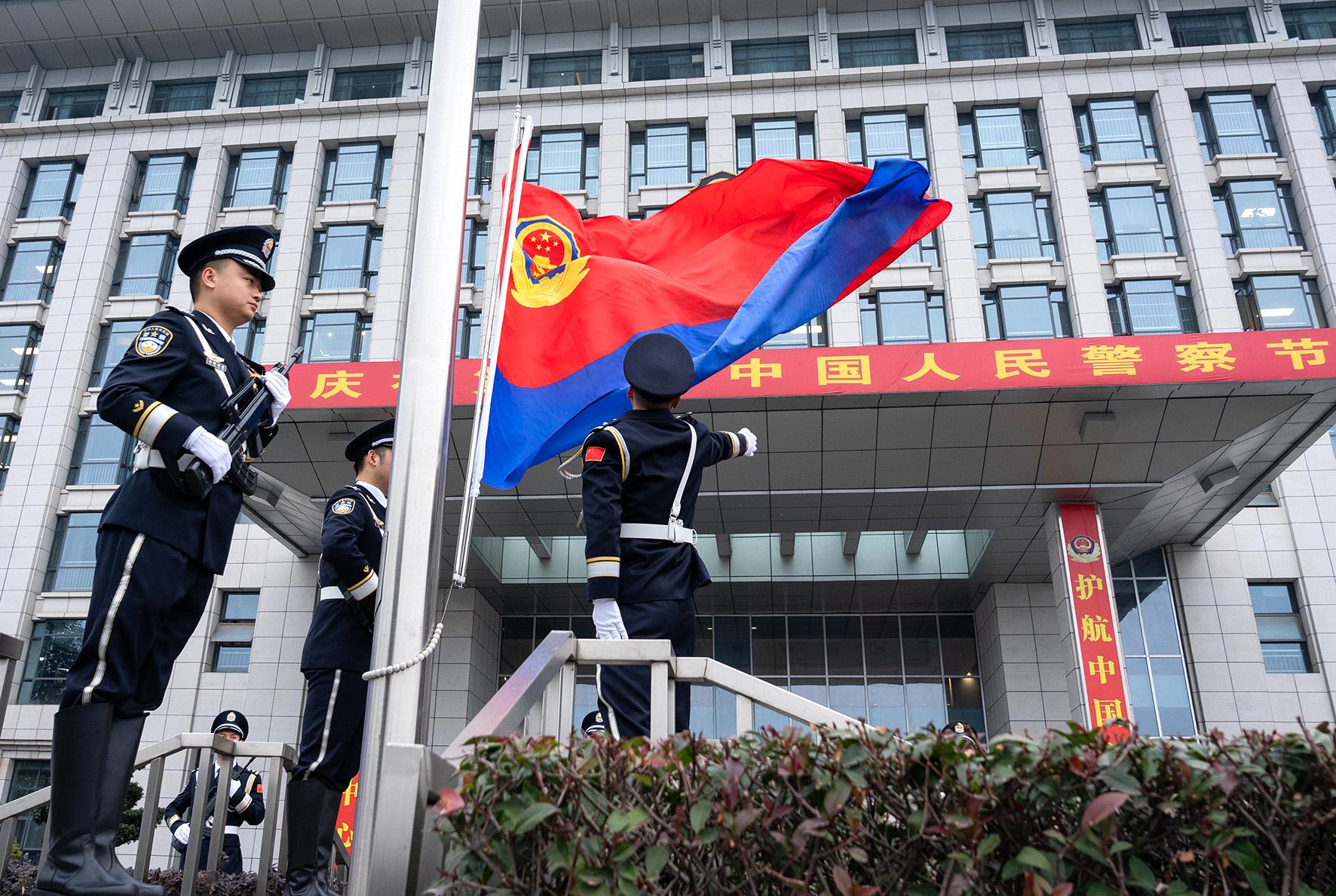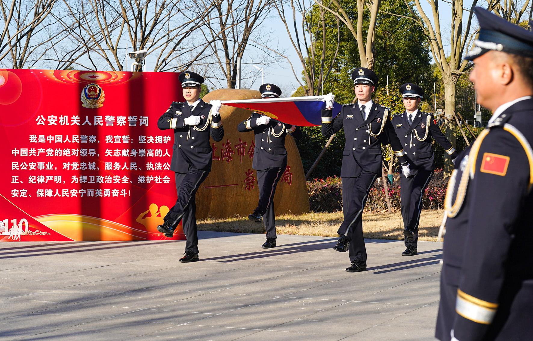 1月10日,為熱烈慶祝第五個中國人民警察節(jié),上海市公安局崇明分局舉行升警旗、重溫入警誓詞活動。
