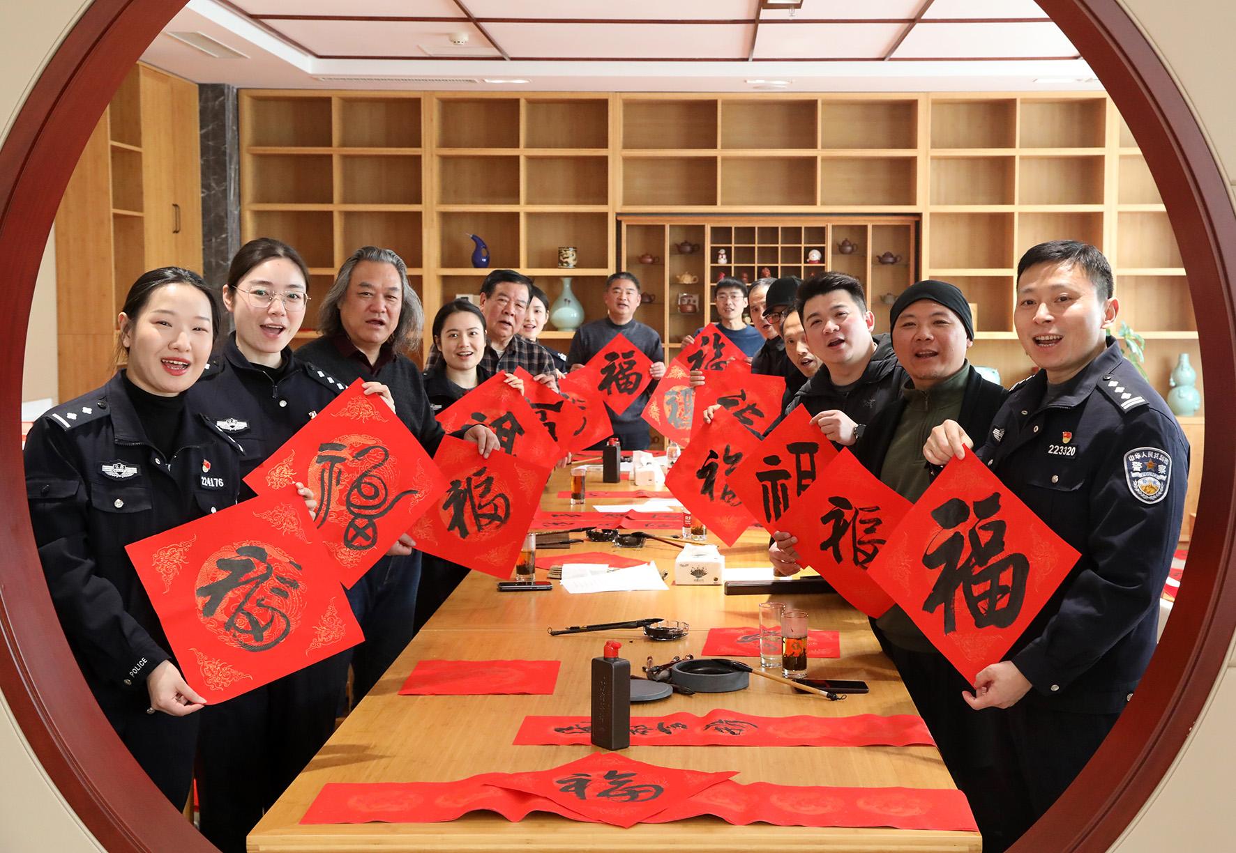 為弘揚(yáng)中華優(yōu)秀傳統(tǒng)文化,豐富警營(yíng)文化生活,1月21日,江蘇省宜興市公安局丁山派出所開展“妙筆迎新春 潑墨送祝?!毙麓簳疫M(jìn)警營(yíng)活動(dòng)。